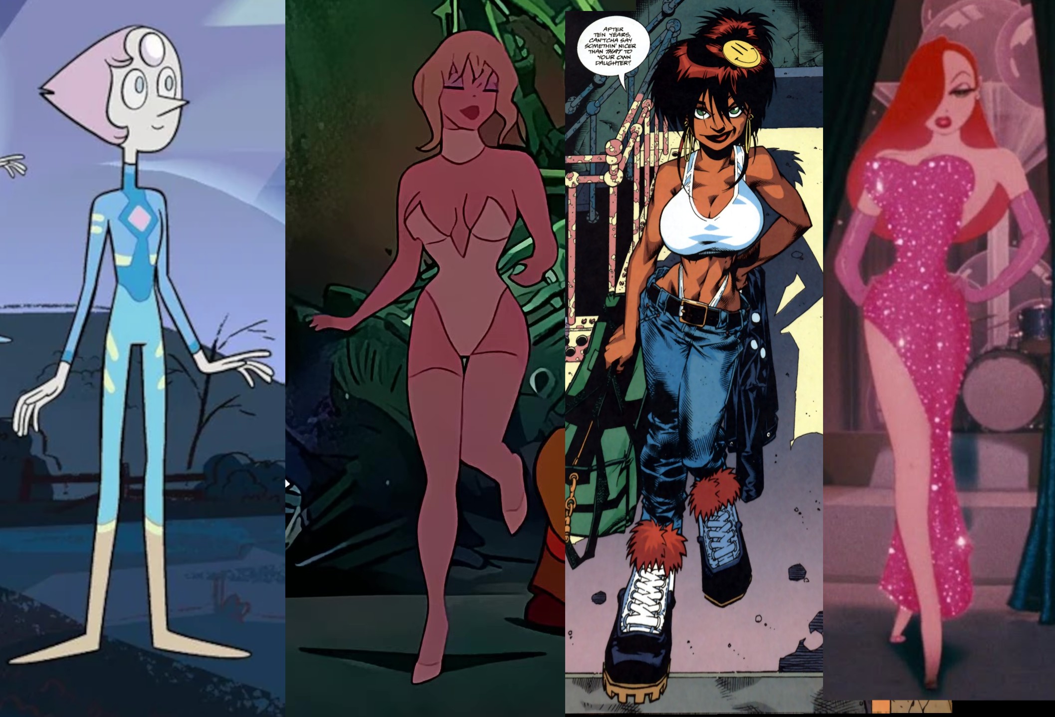 >>151951793>>picked the stickest pic of Pearl he could findThat's the stock image used for the character on both Wikipedia and the Steven Universe wiki. You're the one who wanted her as the comparison.>Also I meant classic animated bombshell, I though that was obvious.If that's what you meant, why didn't you say that, especially after I specifically mentioned Marilyn Monroe?>Panda is closer to Pearl in her zero suit than to Jessica Rabbit or Holy Would.Is this the sort of problem you need an optometrist for, or a psychiatrist?