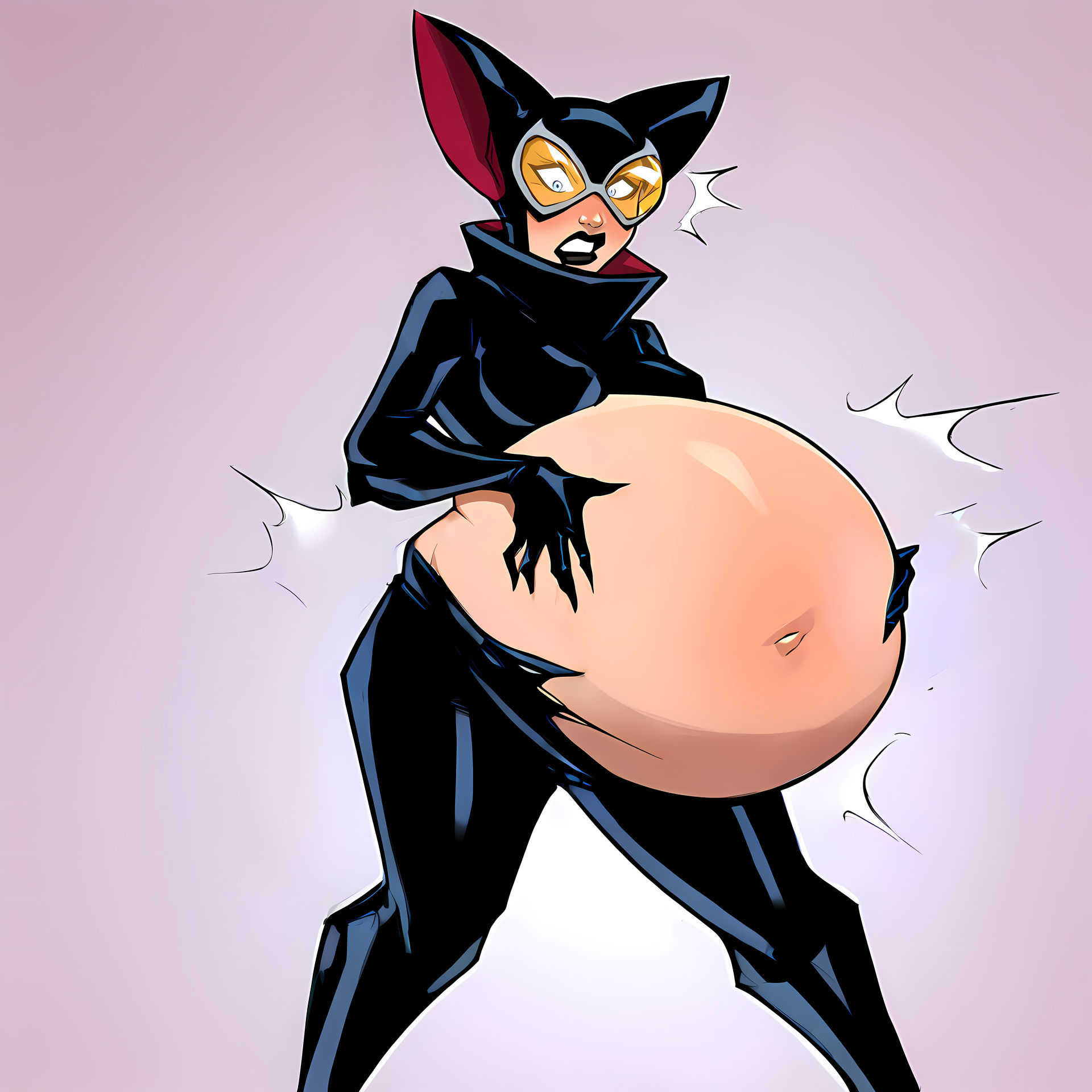 >>151934254Batman feeds her all her favorite foods, spoiling kitty good. It's not a surprise her belly starts bulging, throwing off her balance during heists.