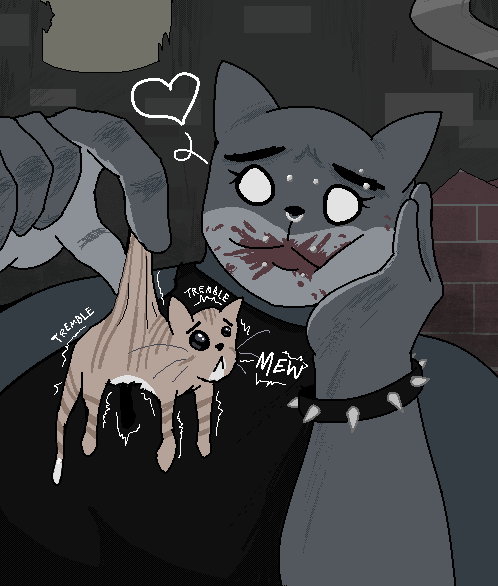 Requesting Purrcival ""accidentally"" sending a very suggestive selfie of himself to one of his schoolmates, with the schoolmate nervously asking for more pics as Purrcival flirtatiously replies to him in DMs.
