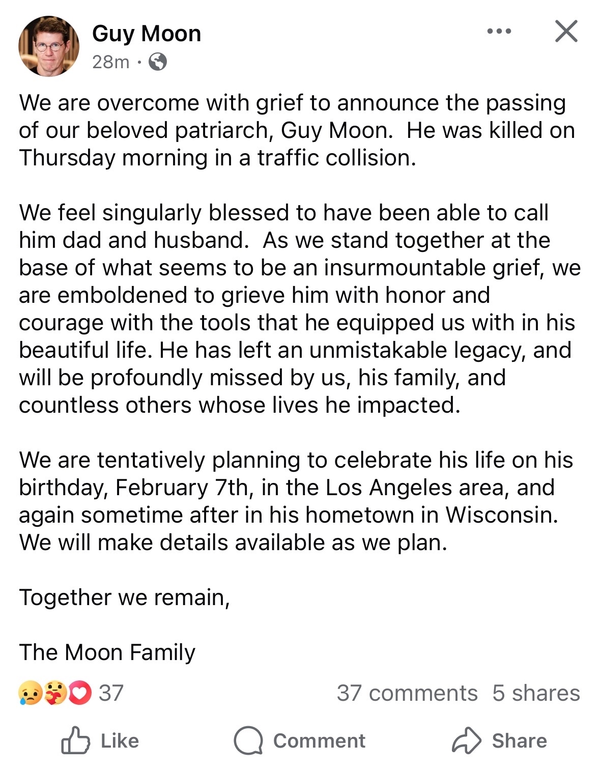 Cause of death was a traffic collision.