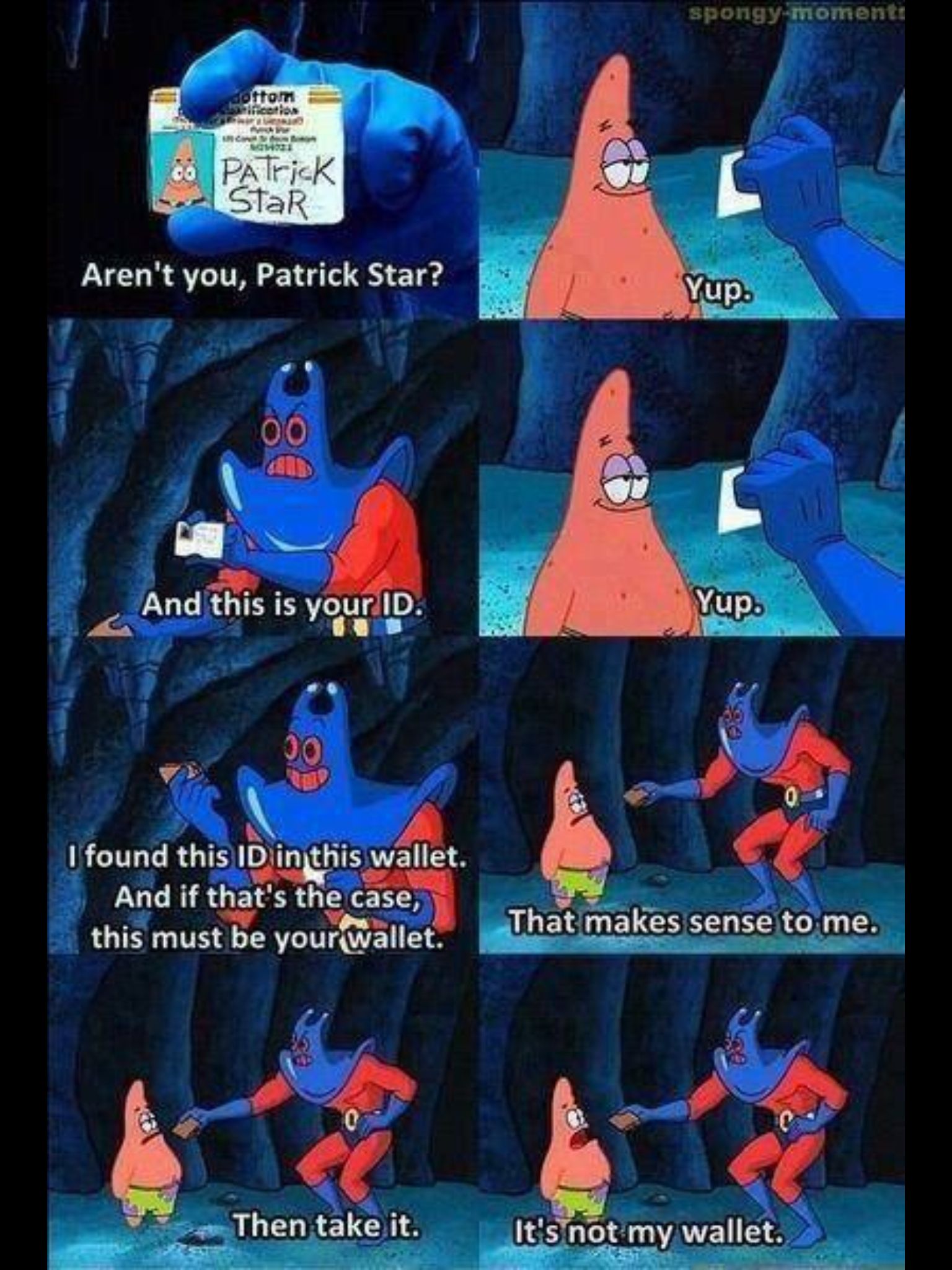 >>152120496This was funny, but maybe also the blueprint for the writers thinking that Patrick being too stupid to be socially functionable was the best way to evolve the character