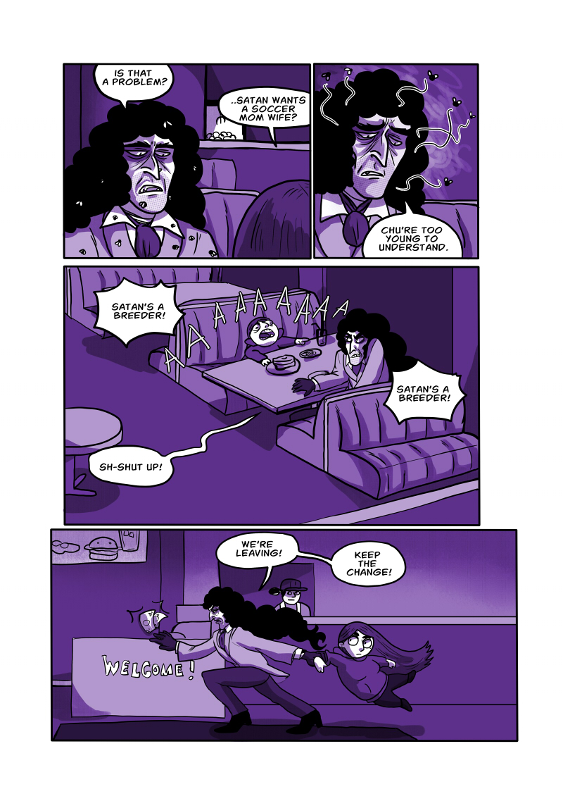 >>152102281> Thread Question:>Pitch your comic to me in ten words or less.The Devil seeks the American dream with his new wife.