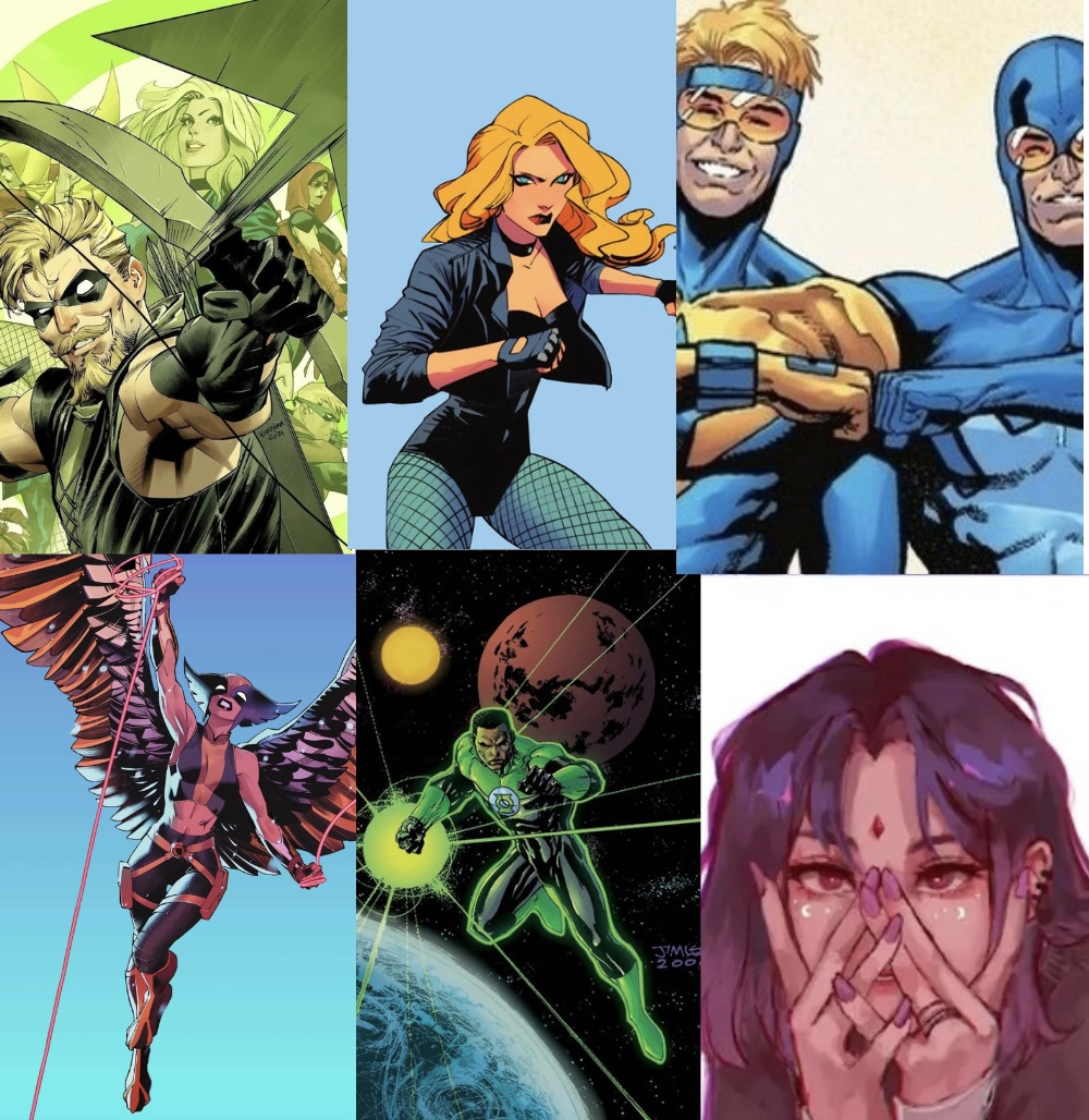 >>153031944Justice League >Green Arrow>Black Canary>Ted Kord>Booster Gold>Hawkgirl>Jon Stewart>RavenStar Squadron (Space based)>Blue Beetle>Hawkman>Starfire>Martian Manhunter>LoboComment too long. Click here to view the full text.