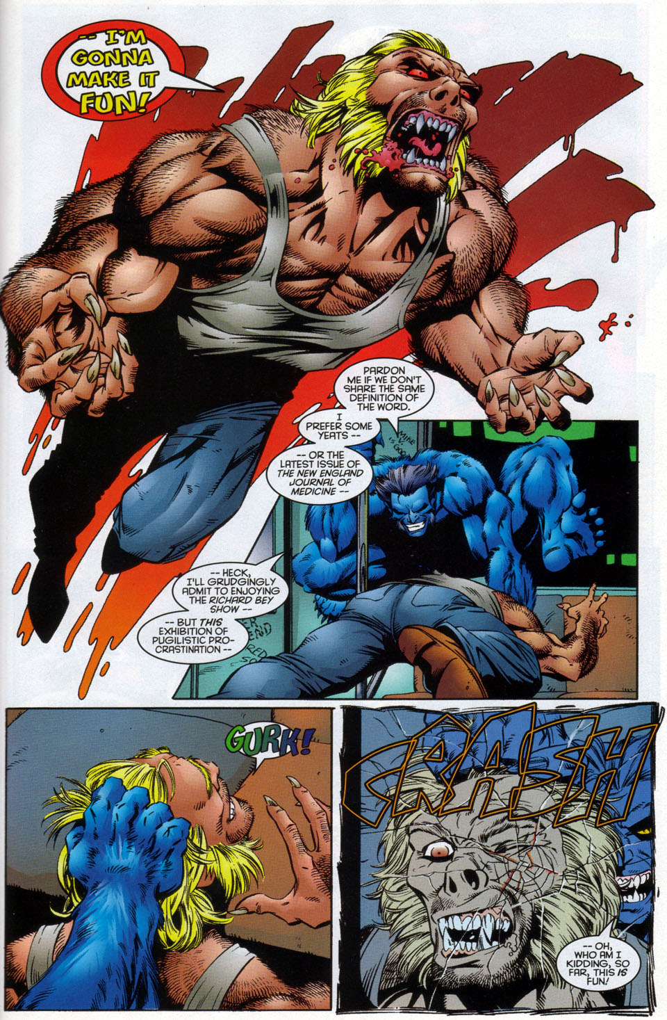 >>152140345He hit her in death hunt after she used a psychic attack on him just for being a jerk. He wasn't even mad and she was fine in the next scene so obviously he didn't hit her hard. "Toxic" yeah, but what do you want from Sabretooth?It was clearly shown that he did care about her during the era that he was pretending to be harmless to stay with the x-men. Gambit showed him a hologram of Birdy and Sabretooth was happy to see her. Gambit then took the hologram away and said it was his fault she died and Sabretooth dropped character and tried to kill Gambit.