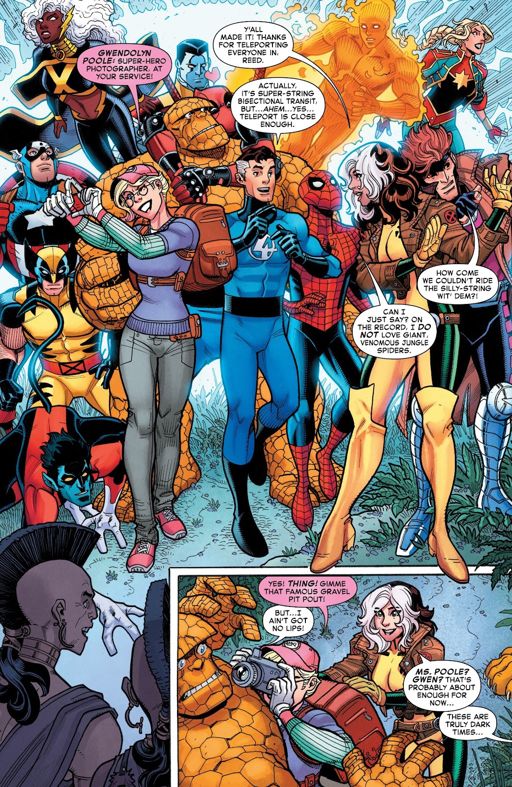 >>151954637I should also mention 2026 already looks like it'll be a dry year for her based on upcoming summaries of the Superman/Spider-Man crossover. It seemed like a perfect opportunity for Superboy Prime and Gwenpool to meet, the two 'Person from IRL gets transported to the world of comic' characters seems like a perfect match, but Prime is already set to instead pair up with Black Suit Peter. Maybe Gwen isn't quite Spidey related enough due to not technically being a Gwen Stacy but it still feels like a missed opportunity.