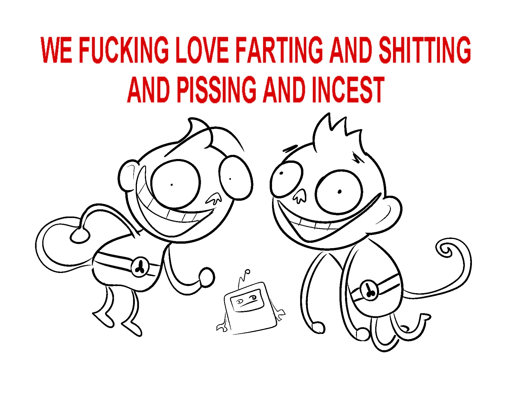 I don't like throwing around "writer's closeted fetish" for everything odd but literally 90% of this show is the monkeys farting, shitting, sniffing each other's farts, enjoying shitting their pants, pissing, literally spitting out their own turd nuggets, touching their shit, showing poop leaving their bodies uncensored, and farting really loud and long.