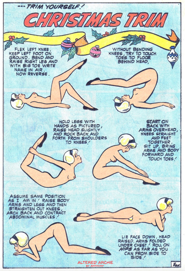 In the original, from her neck down to her wrists and ankles, she wore a skintight black leotard."Altered Archie" is an entire site of edits.