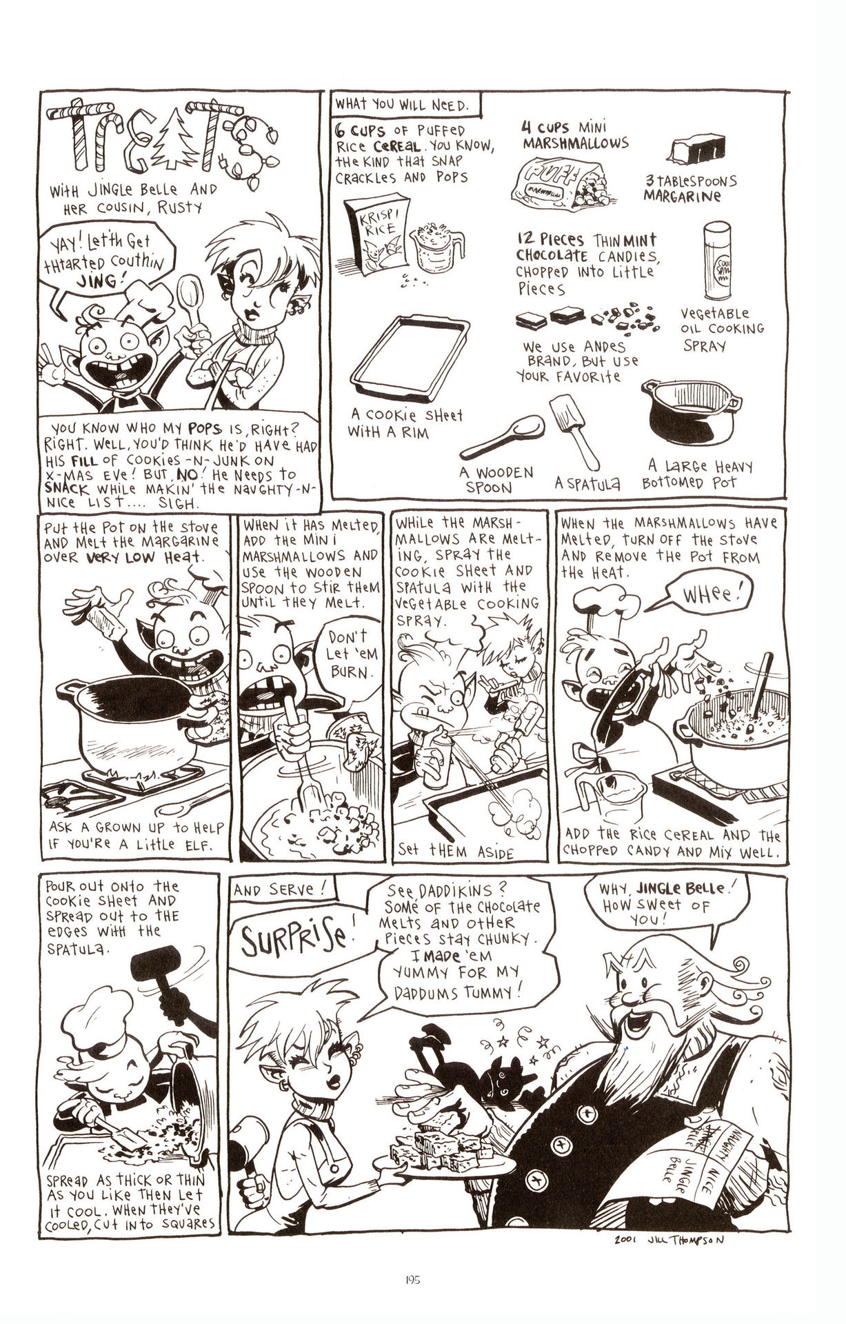 >From the writer that brought you Harley Quinn comes another madcap creation, a saucy sprite bearing a sleigh load of mirthful mischief! This super-sized 340 page omnibus features a new cover by Stephane Buscema and reprints all of Jingle's funniest adventures written by animation legend Paul Dini (Batman: The Animated Series, Duck Dodgers, JLA) and also includes stories and artwork by a galaxy of comics superstars including Stephen DeStefano, Stephanie Gladden, Jose Garibaldi, Kyle Baker, J. Bone, Bill Morrison, Mark Evanier, Sergio Aragones, Jeff Smith and many others!Heads up, I'm not gonna cover all of it in one threadProbably not gonna reach image limit either at least in one go