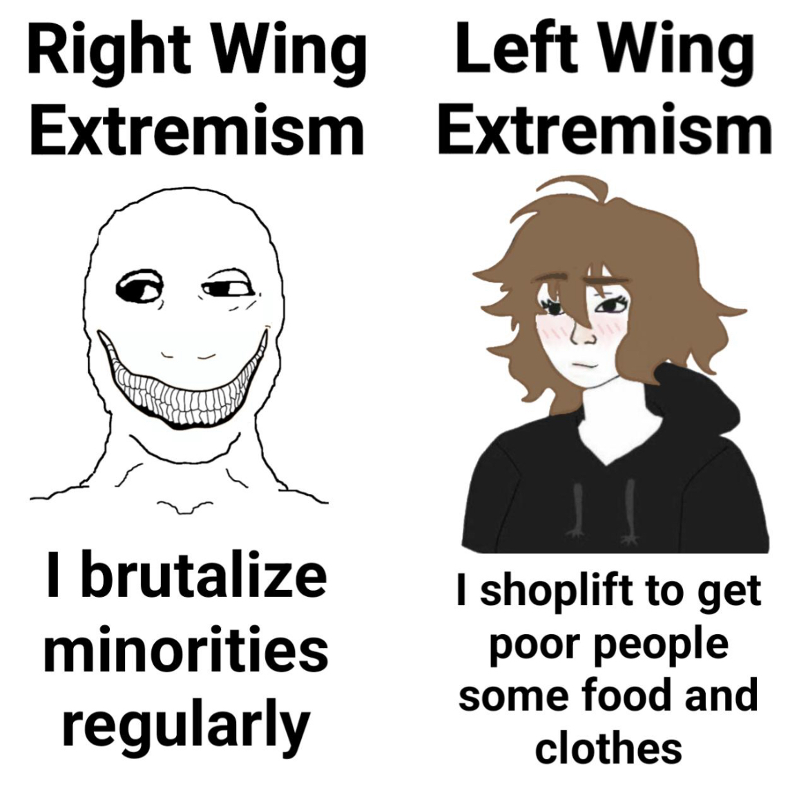 I like to imagine they’re fucking. Right guy assaults jews, leftie goes to volunteer shelters for the victims of said pharma jews, and then they go home and have passionate sex and cuddle and right wing bites leftie a lot but they love it.
