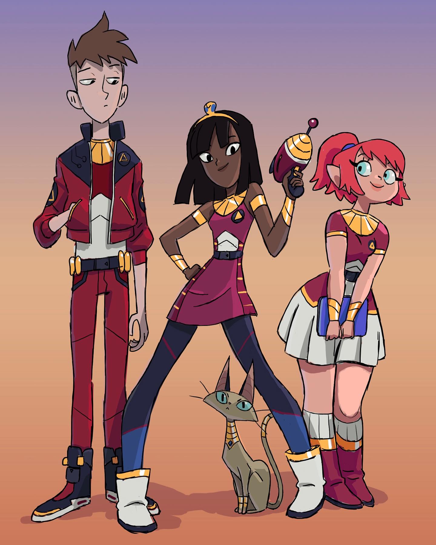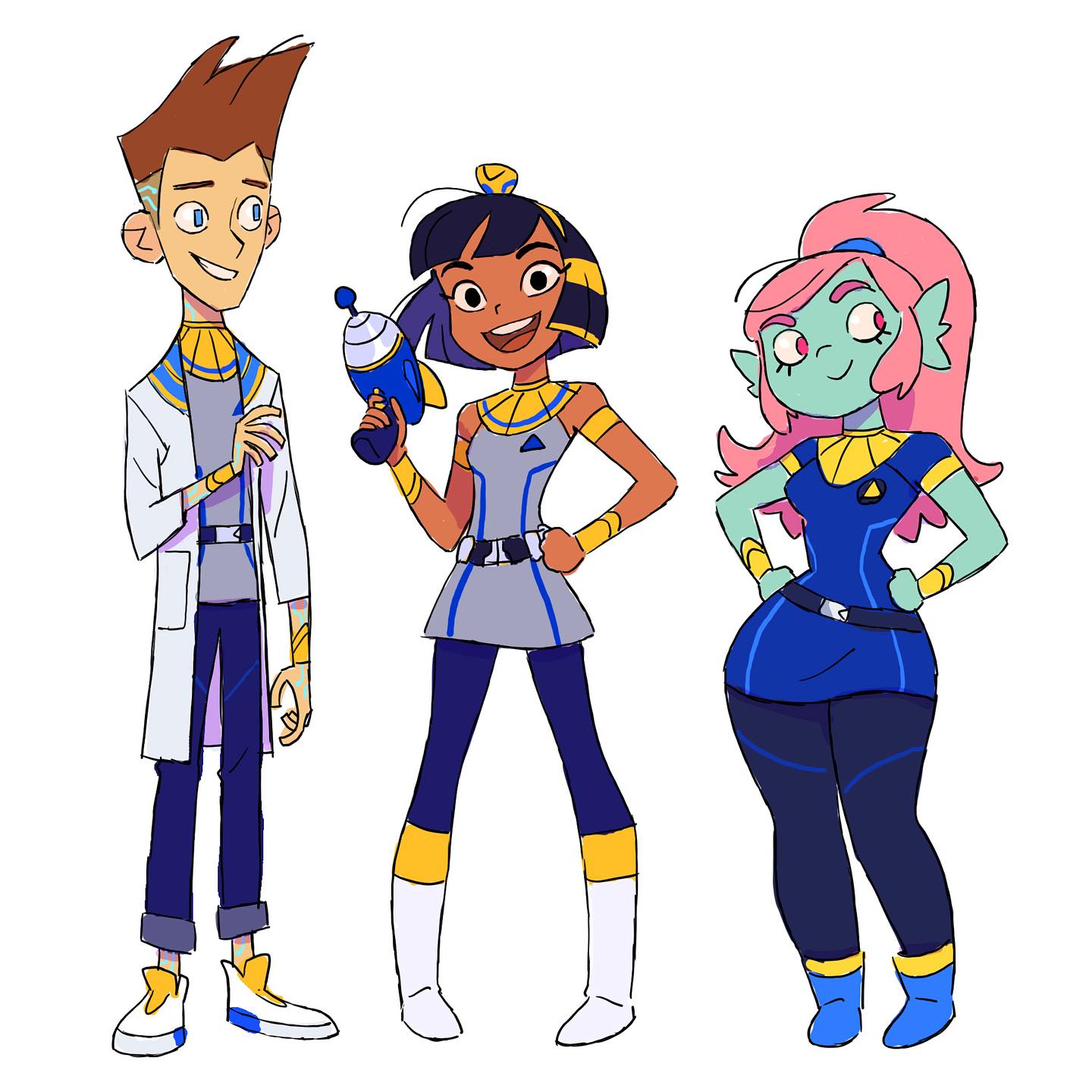 Early Bertrand pre-production concept for Cleopatra in Space characters, before making Akila a fish.
