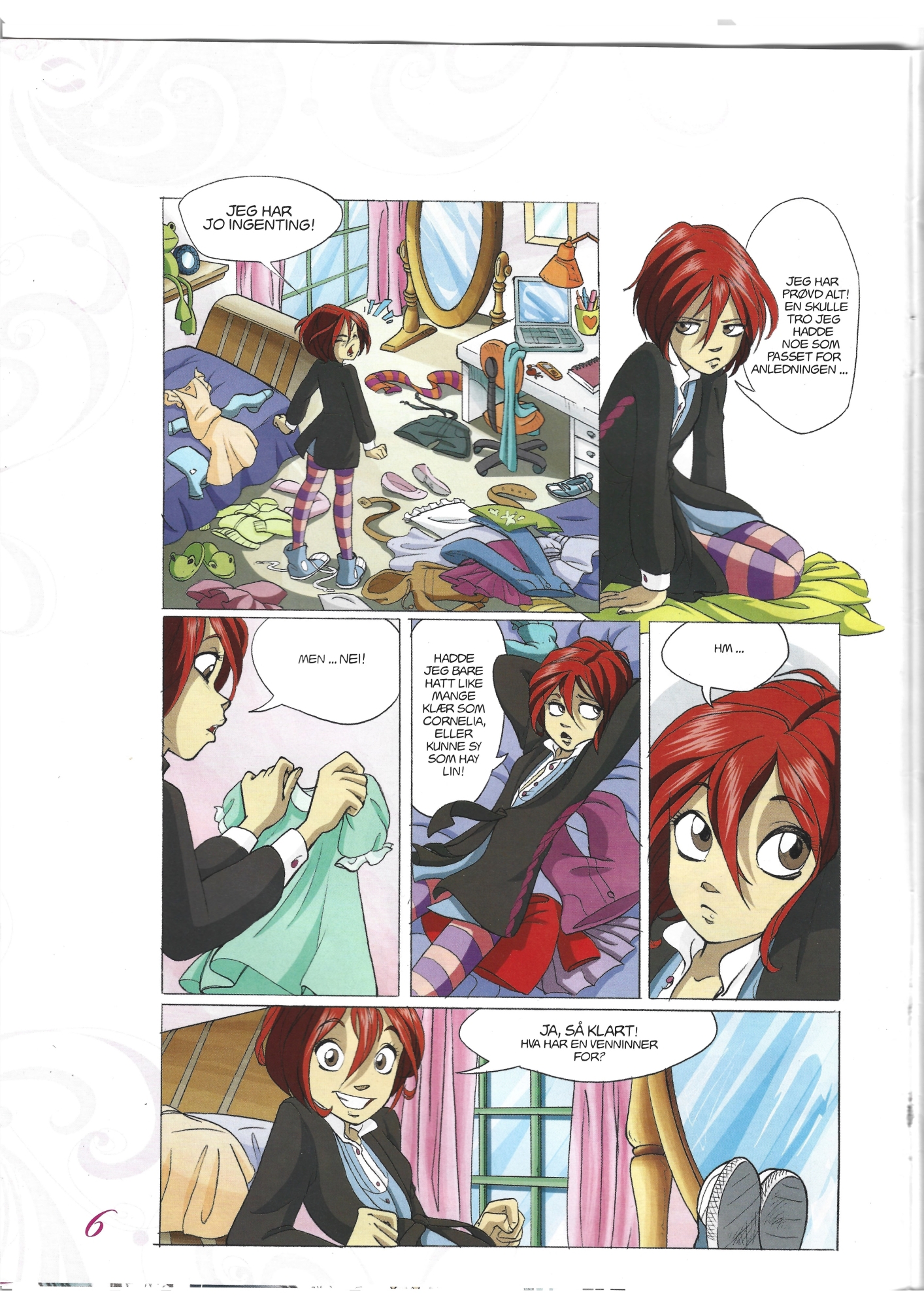 In 2009 WITCH Magazine made a special Giorgio Armani collaboration issue, called Special Issue: W.I.T.C.H. Look Book, published to celebrate 100 issues.My notes, in case OP needs, or wants, to include this in their storytime:Only scan I found was Norwegian in https://archive.org/details/kyoukascangetsu-special-edition-w.-i.-t.-c.-h.-lookbook-scans/page/n13/mode/2upNot found in libgen, annas-archive, globalcomix, readcomiconline, comics.codes, z-library.getcomics.org has a 2GB w-i-t-c-h-1-139-2001 via pixeldrain but no idea if it has the specials.The archive Norwegian scan has several formats, like pdf, jp2; for the jp2.zip in Irfanview I needed to first install the jpeg2000 plugin, then:open IrfanView - Help - Installed Plugins - click to select Jpeg2000.DLL ; exit IrfanView, reopen IrfanView.Alternative is from a PDF: IrfanView - Options - Multipage images - Extract all pages - Extract all frames - Save as jpg (preferable) - Start.If extracted frames are too low-res, change IrfanView - Options - Properties/Settings - Plugins - PDF Options - Set DPI - 72 or experiment to find optimum resolution/file sizes.For picrel I used IrfanView File - Batch Conversion/Rename - Output JPEG - Use advanced options - Resize - Set New Size - Height 2000 - Start Batch