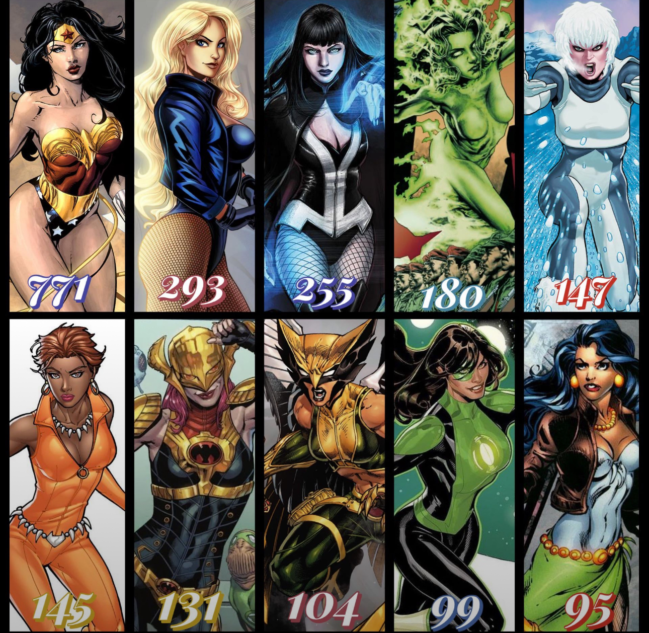 These are the stats on how many issues the top female members were on the team.If you could make an all female team, who would be on it?