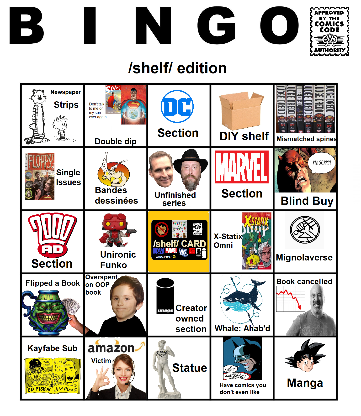 >>152068588>Where is that new bingo sheet people said they were workingI might work on that today. I think we agreed the Funko and X-Statix squares needed to be replaced.