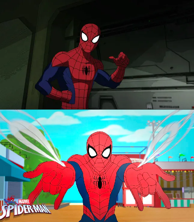 I hate these minor redesigns for the Spidey costume, I had the separated waist band and I hate the missing web section running down the arm, and the main reason I hate it is because despite both these shows being off the air for years at this point, these design elements KEEP SHOWING UP on figures and merchandise, so I'll be checking things out, see a Spider-man thing that I might be interested in, take a closer look and see that it has this bullshit. Same issue with the trunk-less NU52 designs for DC characters.