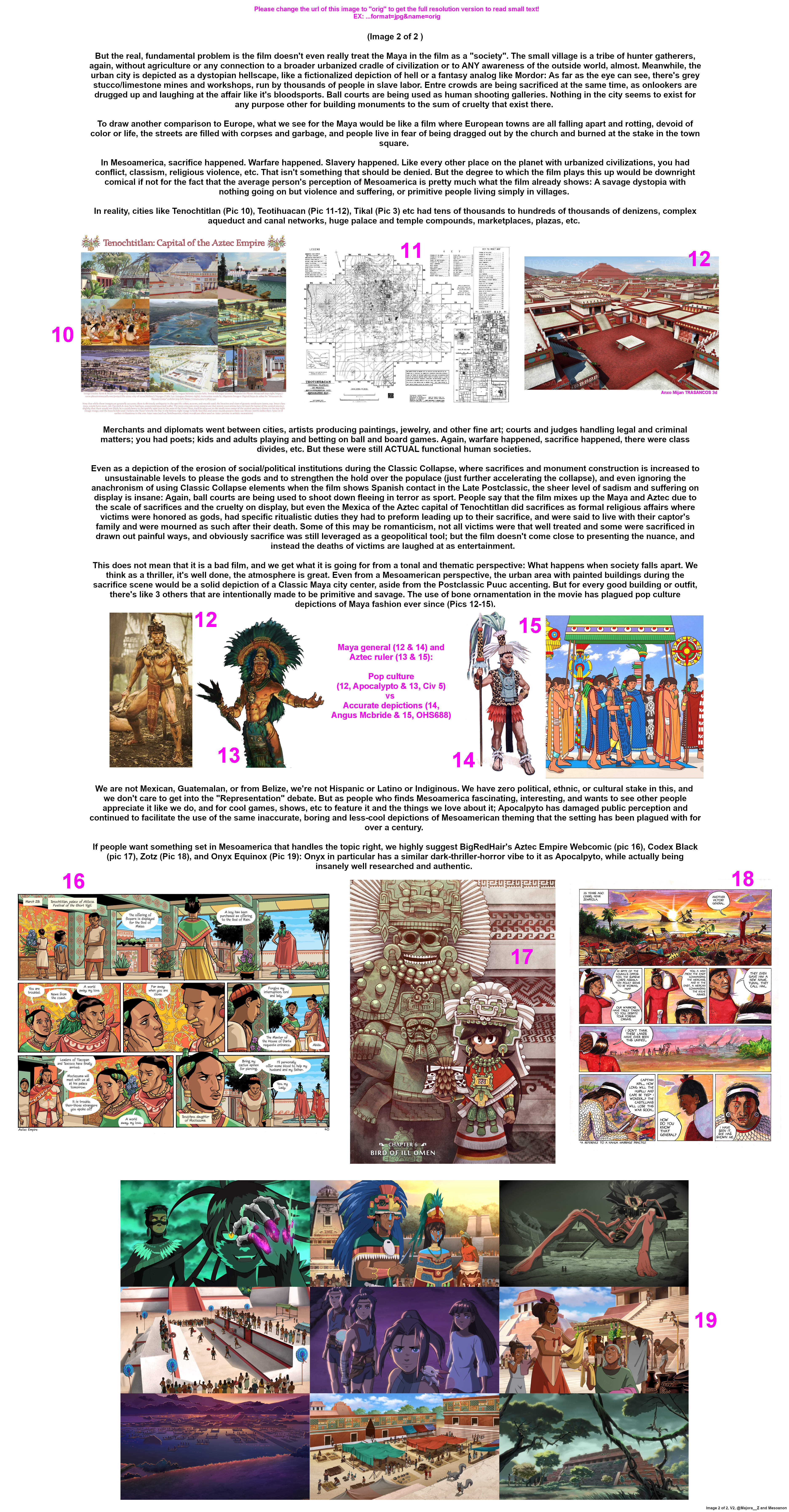 >>153167792Thanks for your informative and thoughtful criticism of the Mel Gibson's movie, Mesoamerican-anon.People back then and even today utterly underestimate how advanced and complex these societies are even at their time and think they are backward just because they are different when compared to "modern" society and expect that the "past" is to be looked down upon.Apocalypto's opposite views (Jaguar Paw's idealistic hunter tribe and the brutal "civilized" society of the Mayans) aren't that different when compared to how medieval popular fiction such as ASOIAF depict Medieval Europe as some backward dark-age where medieval nobles treat peasants like shit and religious-fanaticism and witchhunting were happened 24/7.