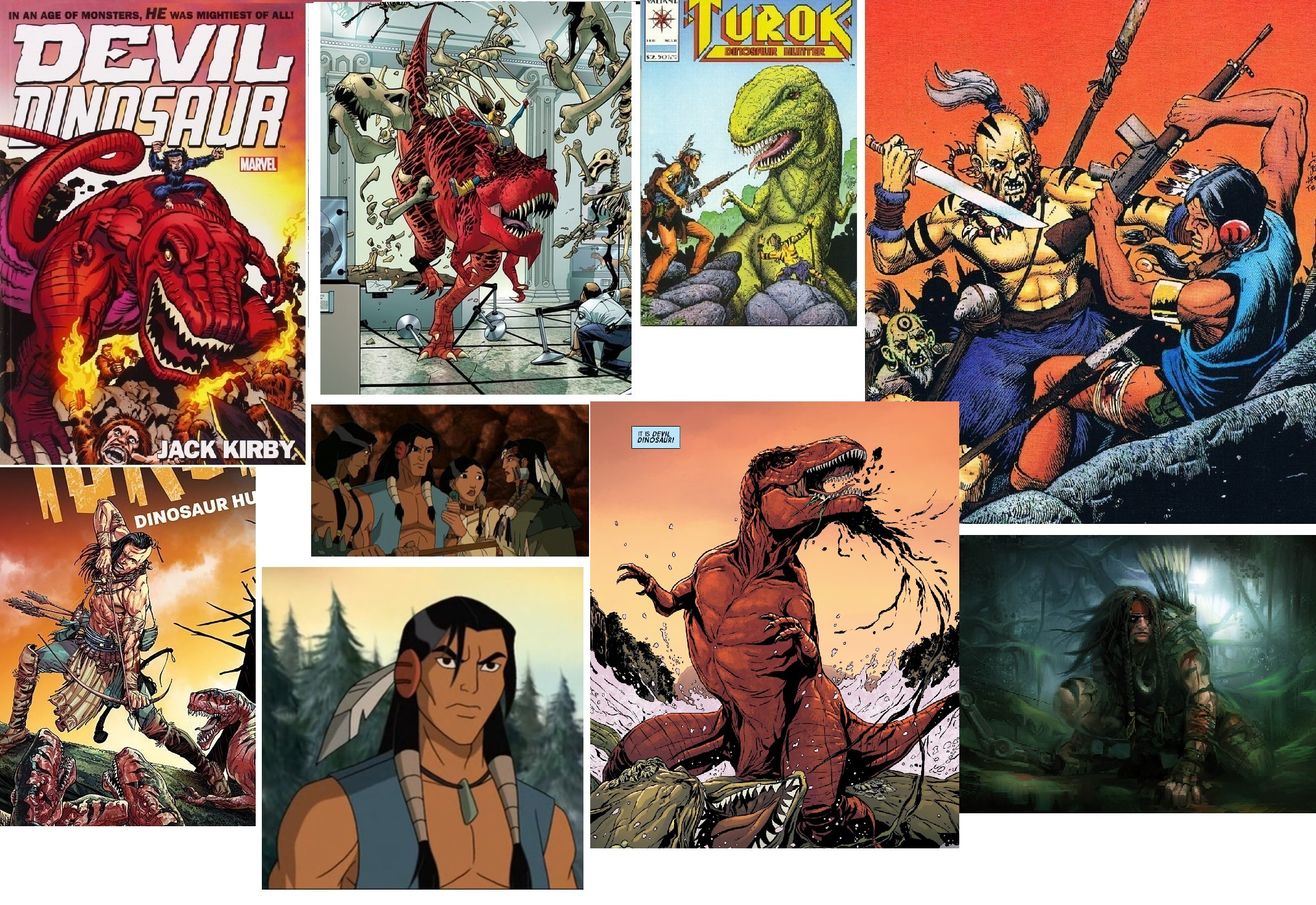 Requesting Turok and Devil Dinosaur back-to-back facing some sort of horde.Turok is wearing a mix of Tactical (or Tacticool) and Native garb.Devil Dinosaur is being his raging self.