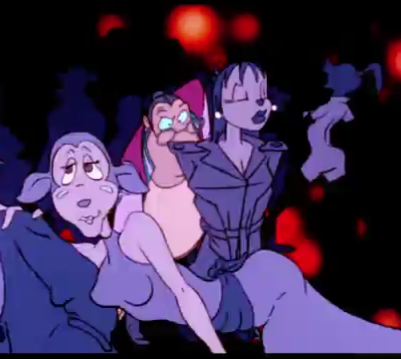 The Club 666 scene in Rock & Rule has a ton of interesting and often cute designs in it. The leftmost one here only appears for like 3 frames, I don't know how much more obscure you can get, really.