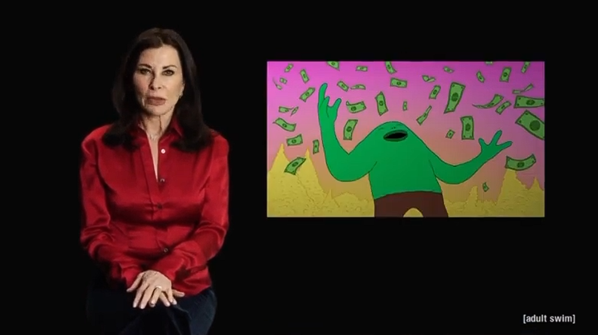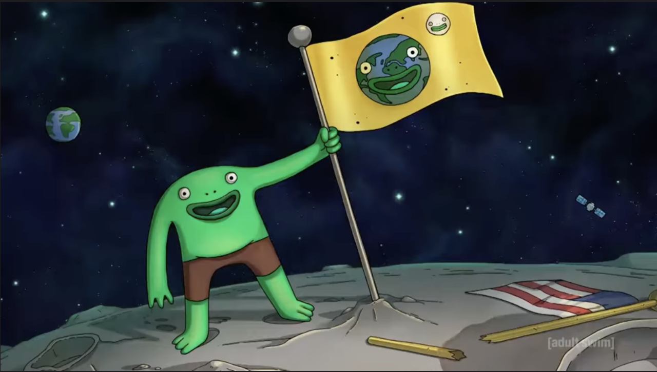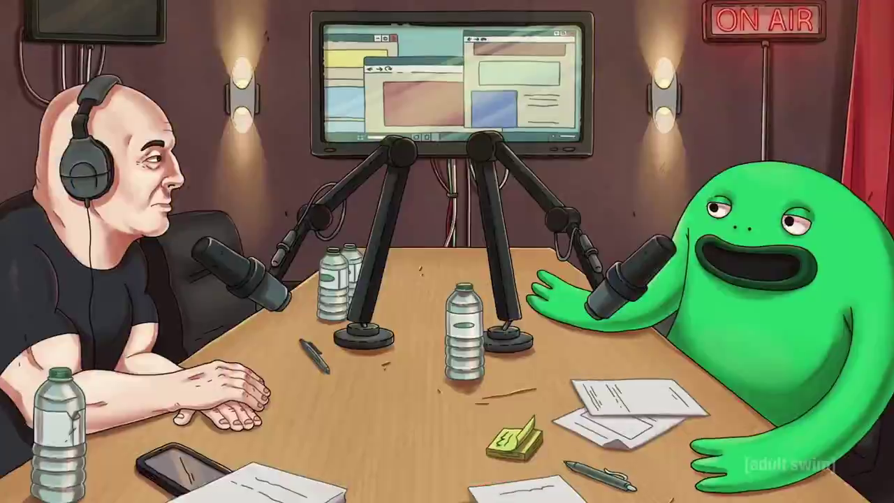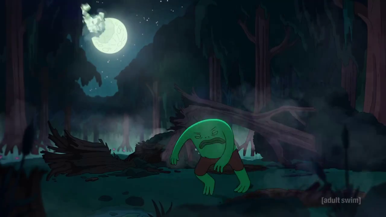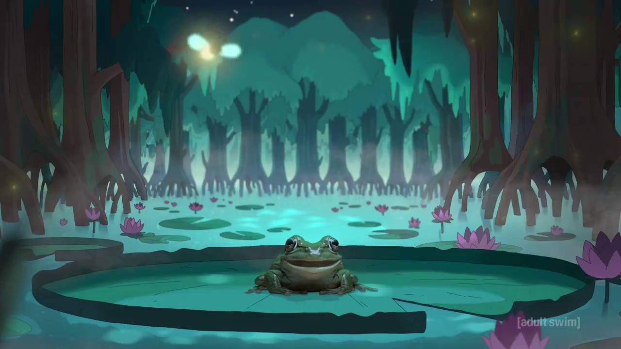 >>150814523This was actually my favorite Mr. Frog episode, and I can’t imagine a better conclusion to his story than the ending of this episode>the conversation with his dad played fully straight while he’s Creed from the Office in full green body paint>Mr Frog’s crashout where he destroys the moon in .5 seconds followed by finding inner peace>The bug of knowledge computer bit>the montage including him at the Kramer Laugh Factory Incident, on Joe Rogan, him posed with fucking Jeffrey Epstein, the last frame just him showing his asshole>Just him turning into a real frog, smiling and saying “Goodbye”Anything further with the character would ruin it.