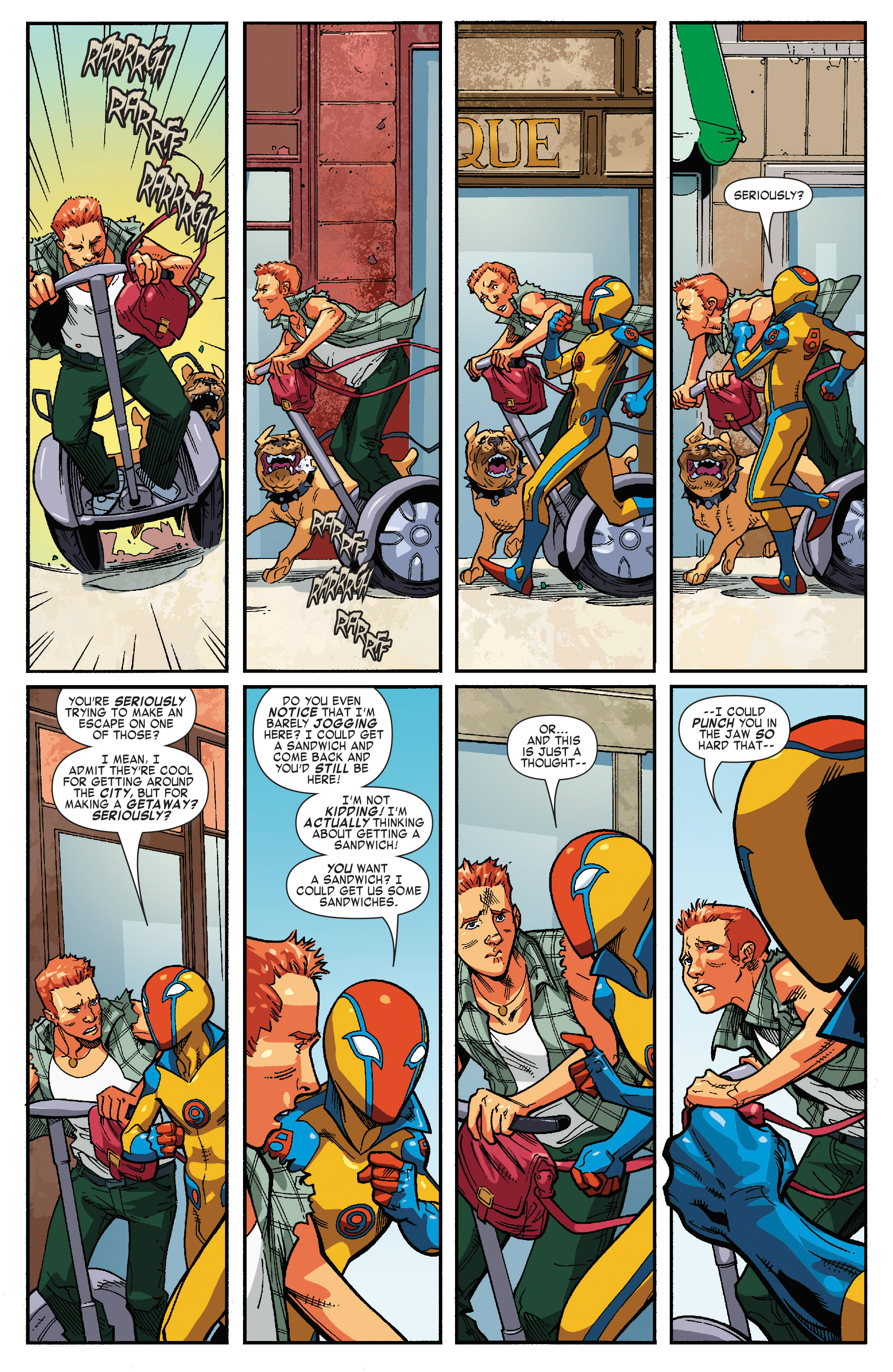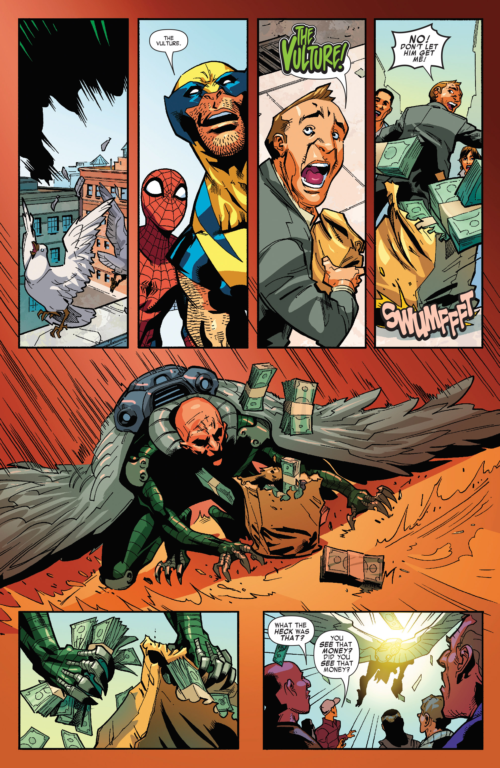 I missed the story time, but when all the birds ganged up on bullseye, I wanted to make a joke about this panel and Spidey's powers getting a little off brand.