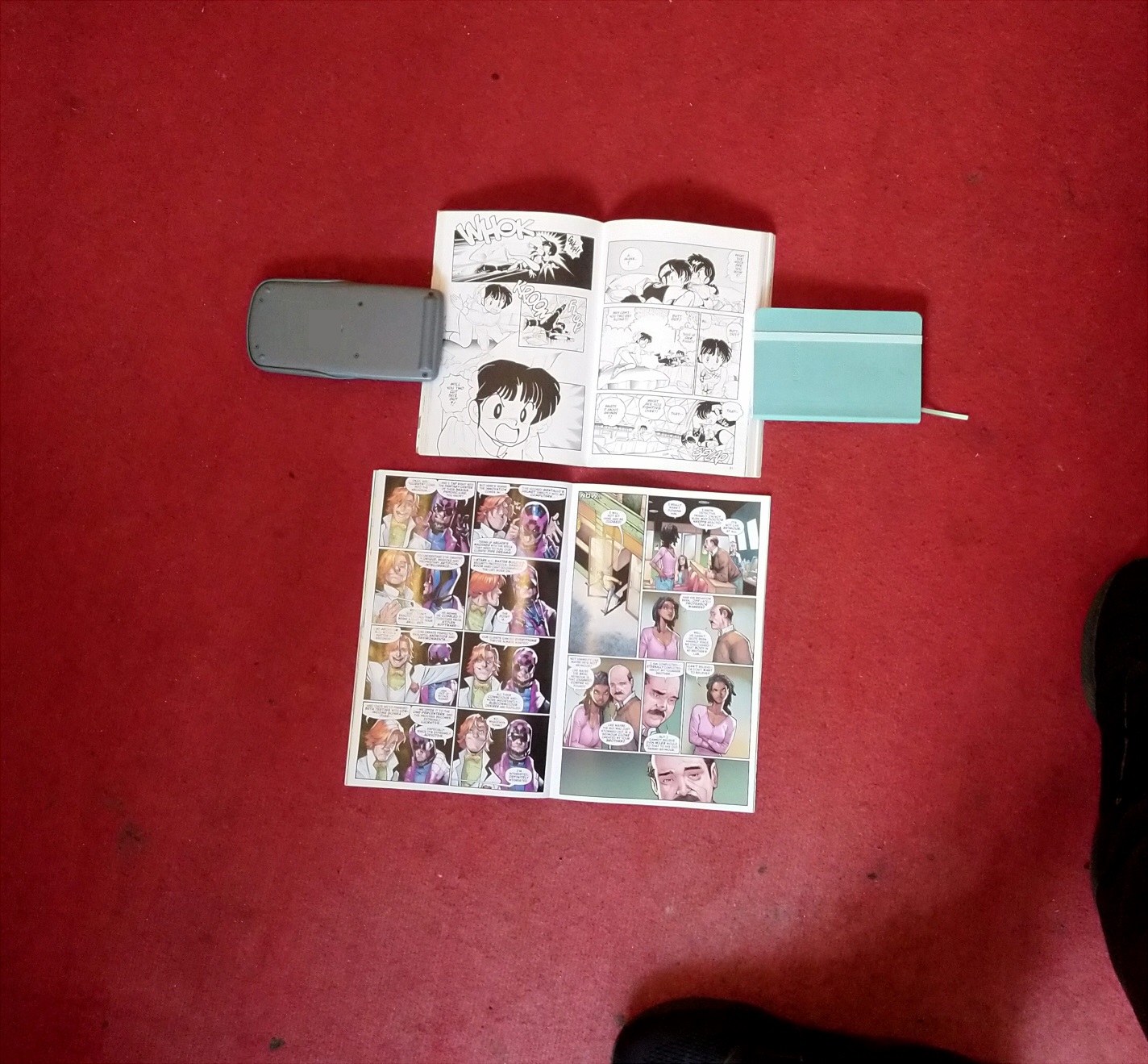 >>150848454contAnd here's how to fix comicsThe tl;dr is that we're just going to copy manga>1) good print quality>>a) paper Look at this image here. I've put a comic floppy and a manga tankobon on the floor. At this distance it becomes immediately obvious which one is more pleasant to look at.The paper in the manga is thicker and matte, this is far easier on the eyes and easier on the hands. The comic floppy is glossy, this produces glare in the light, the paper is thin so it tears and crumples easily in the hand, and the smooth nature of the paper makes it sweaty in the hand also.>>b) proportionsThe manga tankobon is smaller in size, and thicker due to having more pages. I own thousands of books of all different shapes and sizes, and the tankobon is the optimal size that a book should be. If it's too large, it's heavy and cumbersome to hold. If it has too many pages, you can't open the book. If it's too small, it's fiddly in the hand, and if it has too few pages it becomes floppy.Comic floppies are both too large and too few pages. They are impossible to read with one hand or at odd angles such as in bed.>2) the artThis is too deep to go into for this rant, but the most effective and simple suggestion is to reduce the number of artists working on a comic to no more than two, ideally one, but if there are two, they must be working closely together.While I have the image of the comic and the manga on the floor posted here, I'll mention the panelling.The panels in the manga are bigger, the text is bigger, the figures in the panels are bigger and zoomed in. This makes it easy to read. Comics are drawn with too many panels and text even smaller and figures even smaller in those panels, you have to squint to see what's going on.