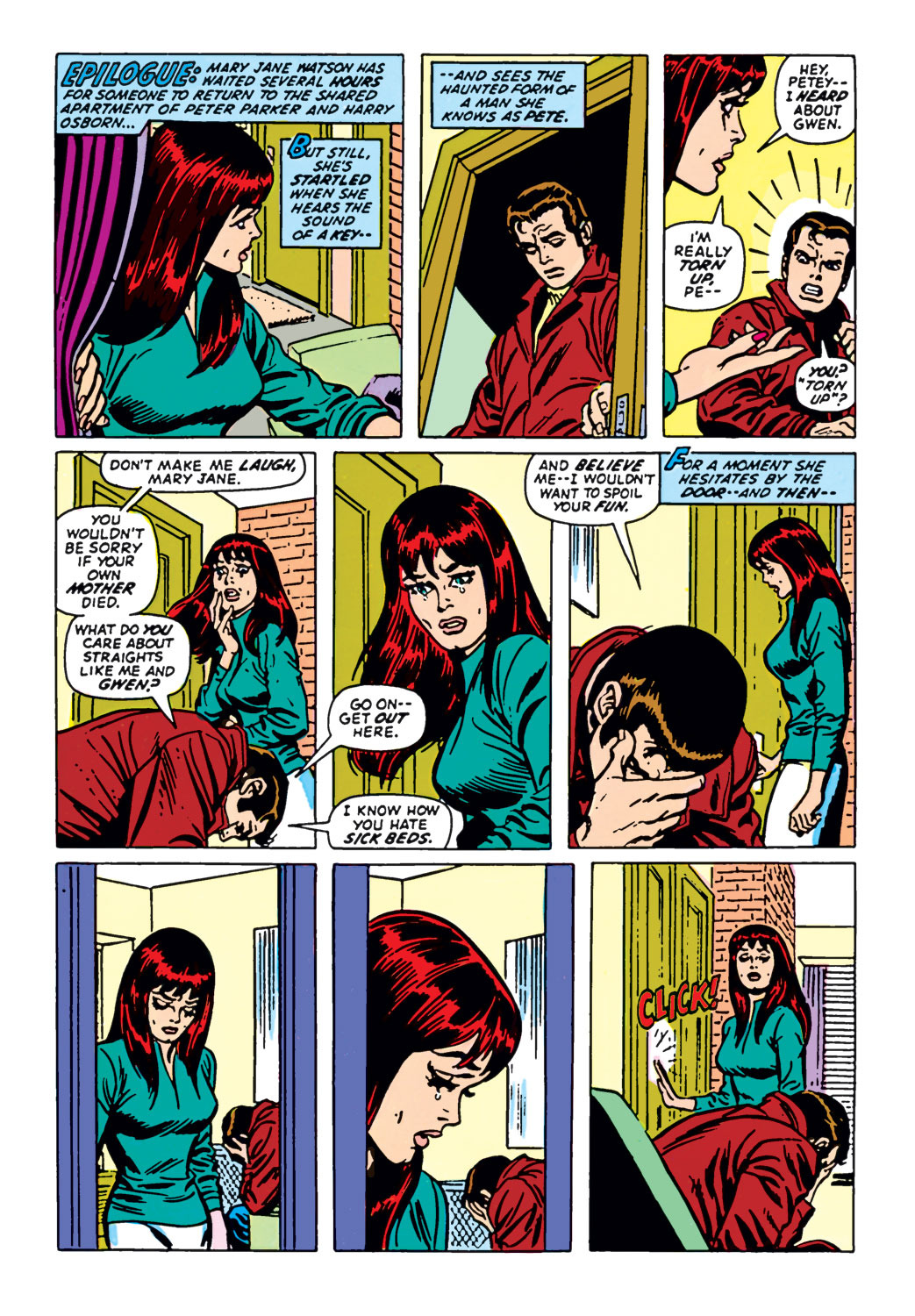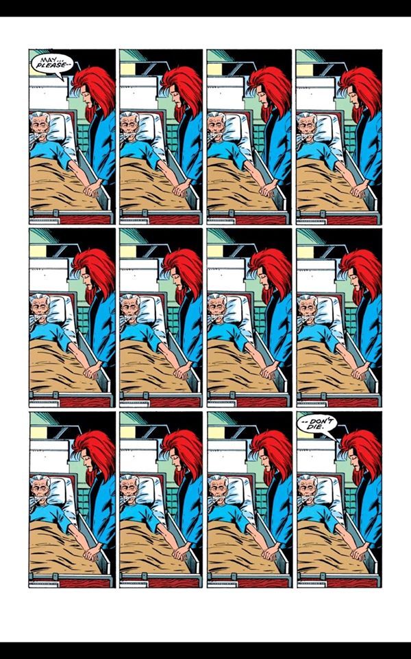 >>150848713Here's a good example of the kind of art that emerges when the artist and writer are separate.The writer here has written a sad story about Aunt May from Spider-man, but the artist does not care about these characters the same way, he is just a hired gun, he is incapable of rendering the faces with any life in them because he is not also the writer. The best he can hope to achieve is to make a vaguely sad face in a mirror and copy that into his art.This is not interesting to look at, and the writing is rendered uninteresting also as a result.It is essentially bad acting. When an actor wishes to give a good performance, he studies deeply the character he is to become. The best actors go to extreme lengths, method acting, to achieve this unity with the director's vision. But comic artists cannot do this, it's just not economical, the only way to achieve this level of quality, is for the artist to already be deeply interested and familiar with the writers story, or to simply be the writer himself.