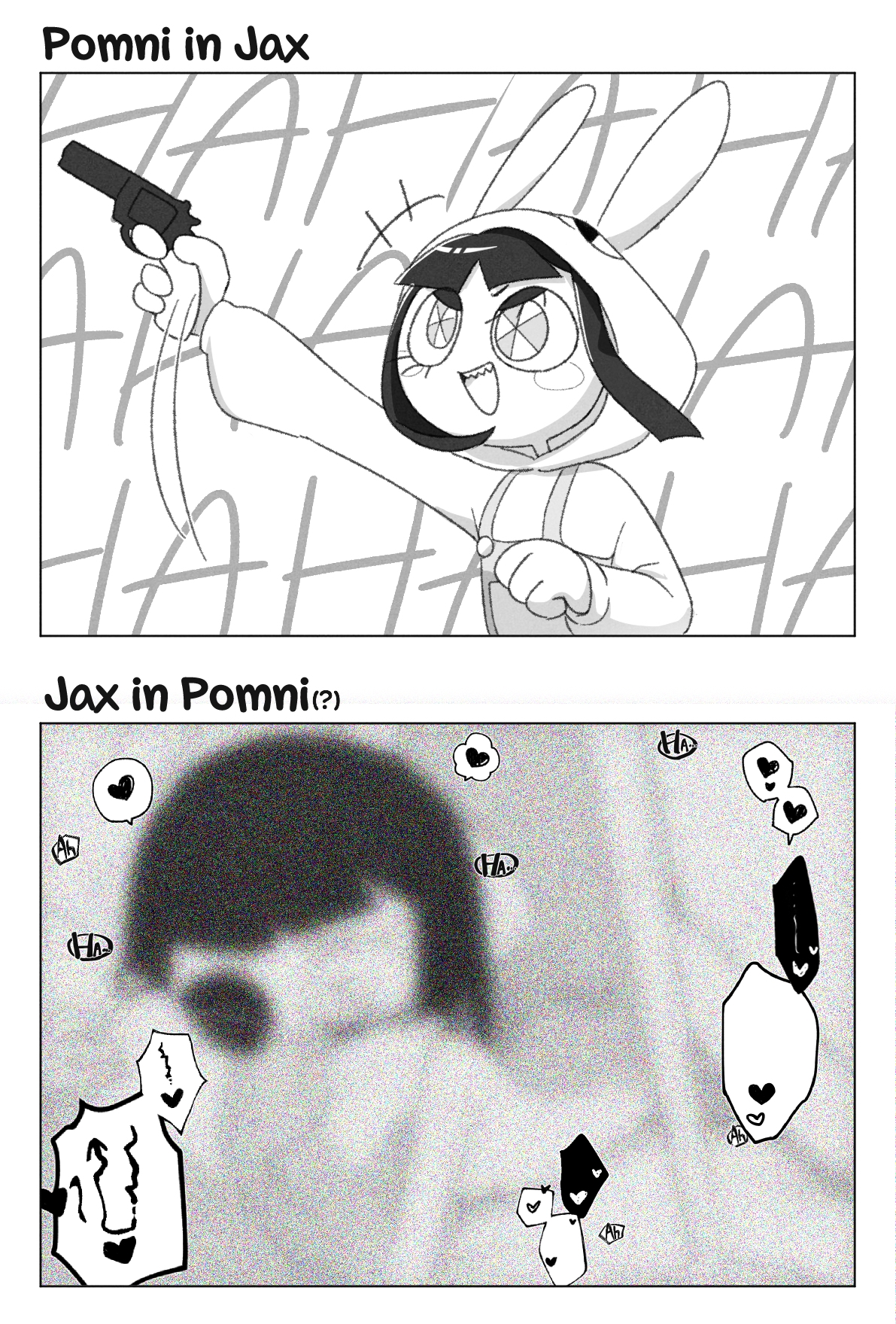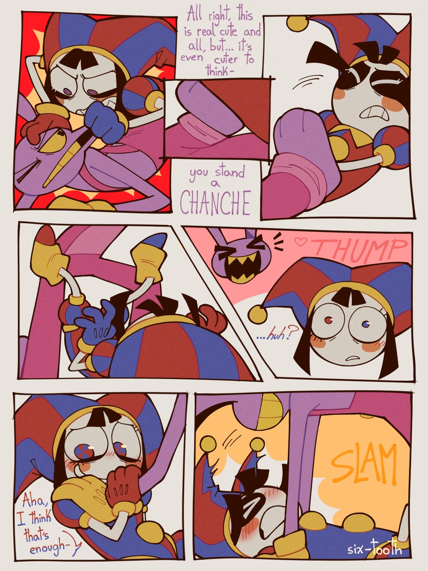 >>150872362It really doesn't help that Jax's whole "I'm le villain" spiel is so transparently insincere that people think he's just one forced hug away from breaking down in their self-insert's arms. It'd be funny if Jax just got worse and ended the show on a "not good but not doomed" note. I also can't blame artists for wanting to cut to the chase and skip to afterglow stuff instead of drawing a million pictures of Pomni slowly wearing Jax down as build up.