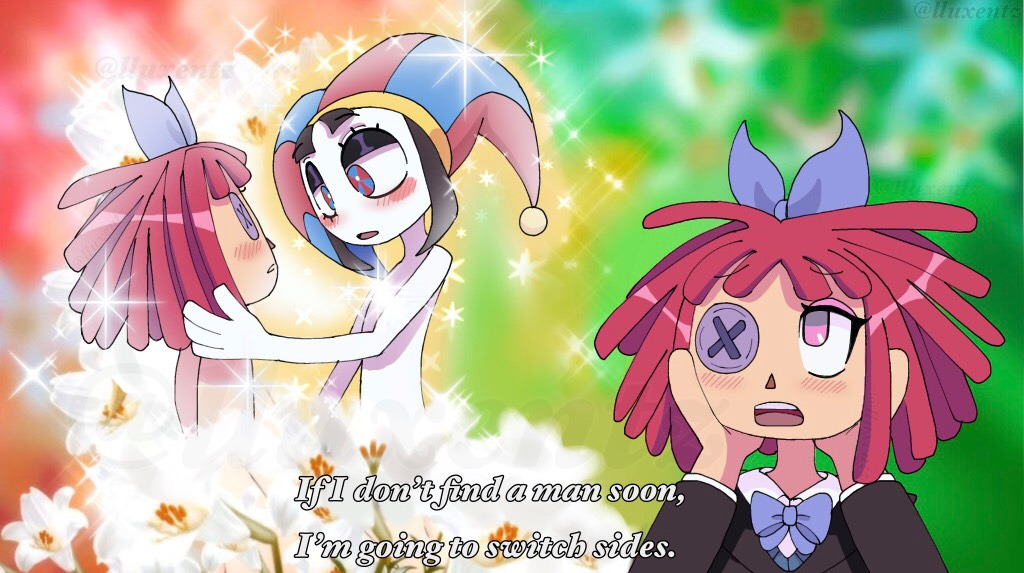 I wish every character was hot. I wish Gangle had thighs. I wish Caine was tall. I wish Jax had shoulders. I wish Pomni was feminine. I wish Ragatha... uh....