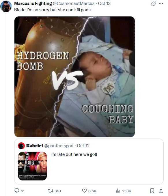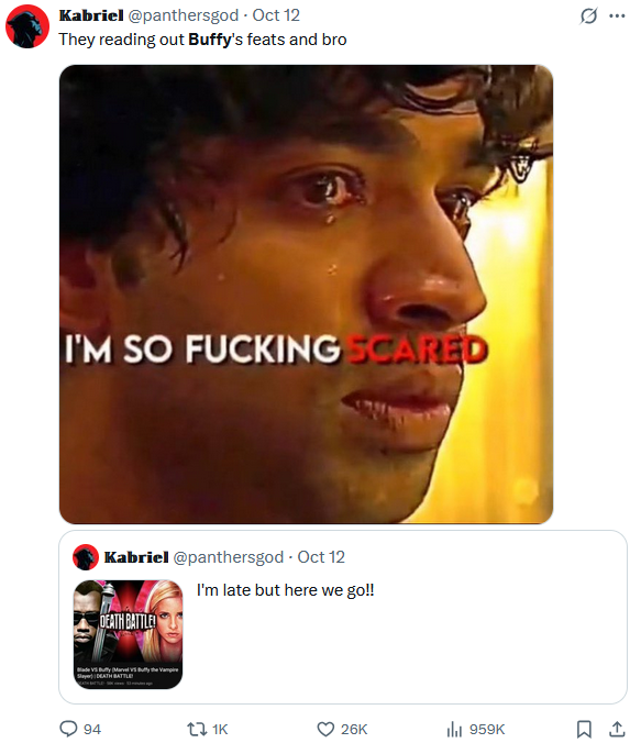 the xitter reaction to blade vs buffy was pretty funny