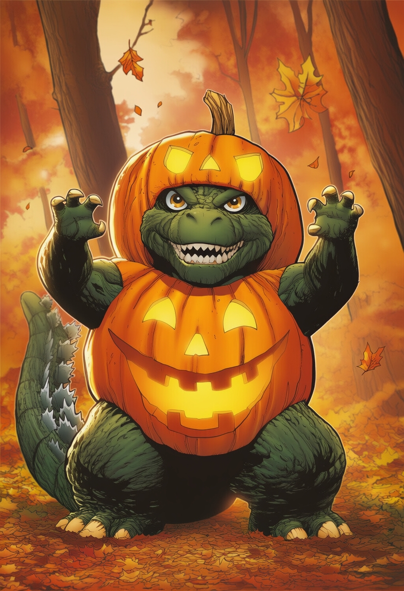 >>150858406>>150858571>>150858621>>150858727>>150858814Someone should do an image of Godzilla fighting a jack-o-lantern Halloween-y monster. I mean, if someone wants to, of course. I'm not demanding anything.