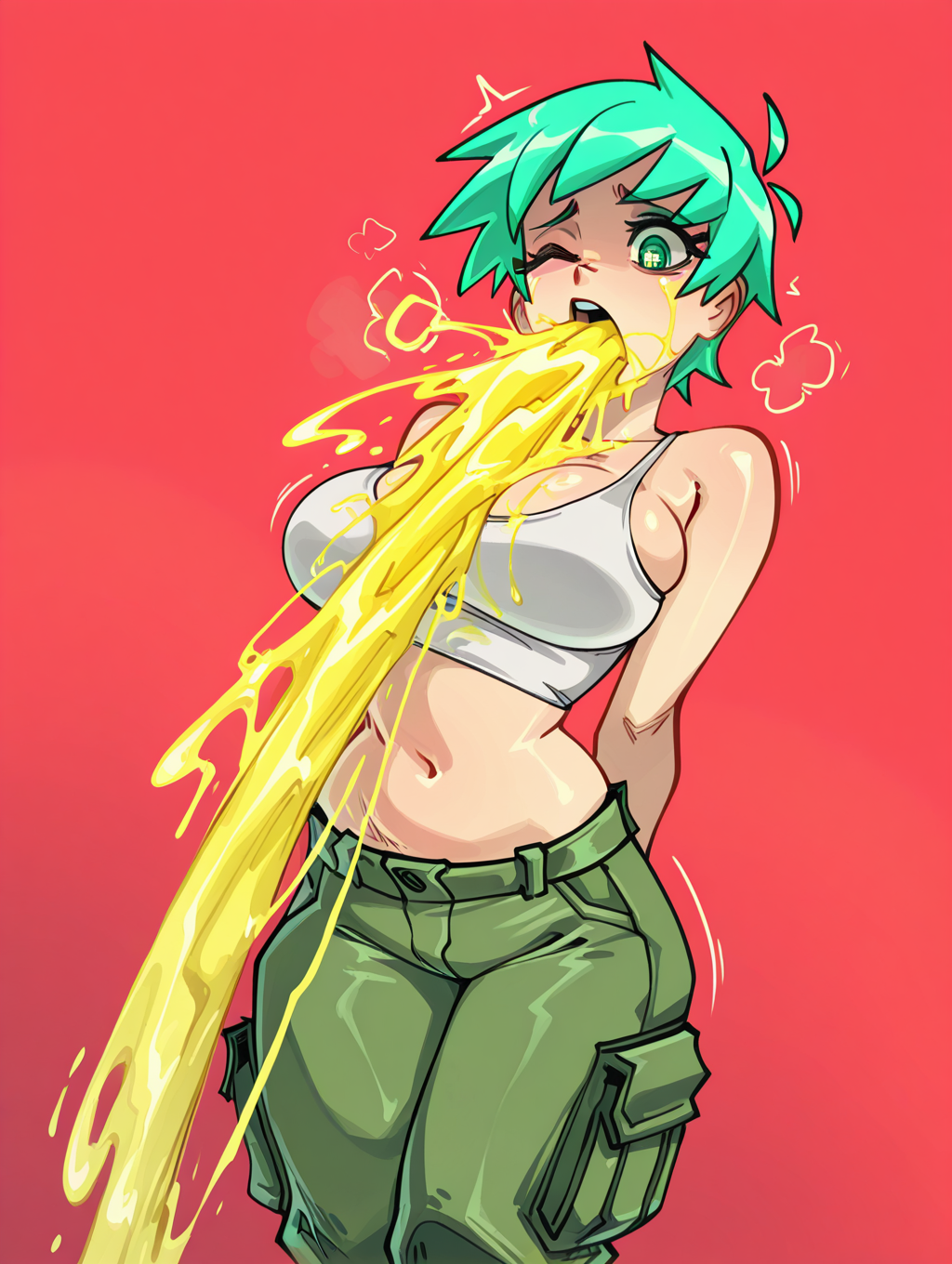 >>150886476Sexy 1994 grain photo, simple art style, high quality photo, Caucasian cute sexy stacked 18 year old porn star babe with massive saggy overfilled fake round 2800cc boobs, 1994 short blonde brown hair, bangs, blue eyes, makeup, squinted eyes, sexy smug smiling expression, massive overfilled round saggy breasts read to pop, overfilled pectoral region, slim figure, wearing a blue metallic string micro bikini fully covering up erect nipples, blue metallic heel gold strap shoe, 1994 style plastic earrings, oiled skin, skin glistens with a sheen of oil, highlight her smooth texture, sexy pose with one hand on her hip, background: abstract pattern backdrop, low light, neon pink, atmospheric haze, long exposure, handheld shot