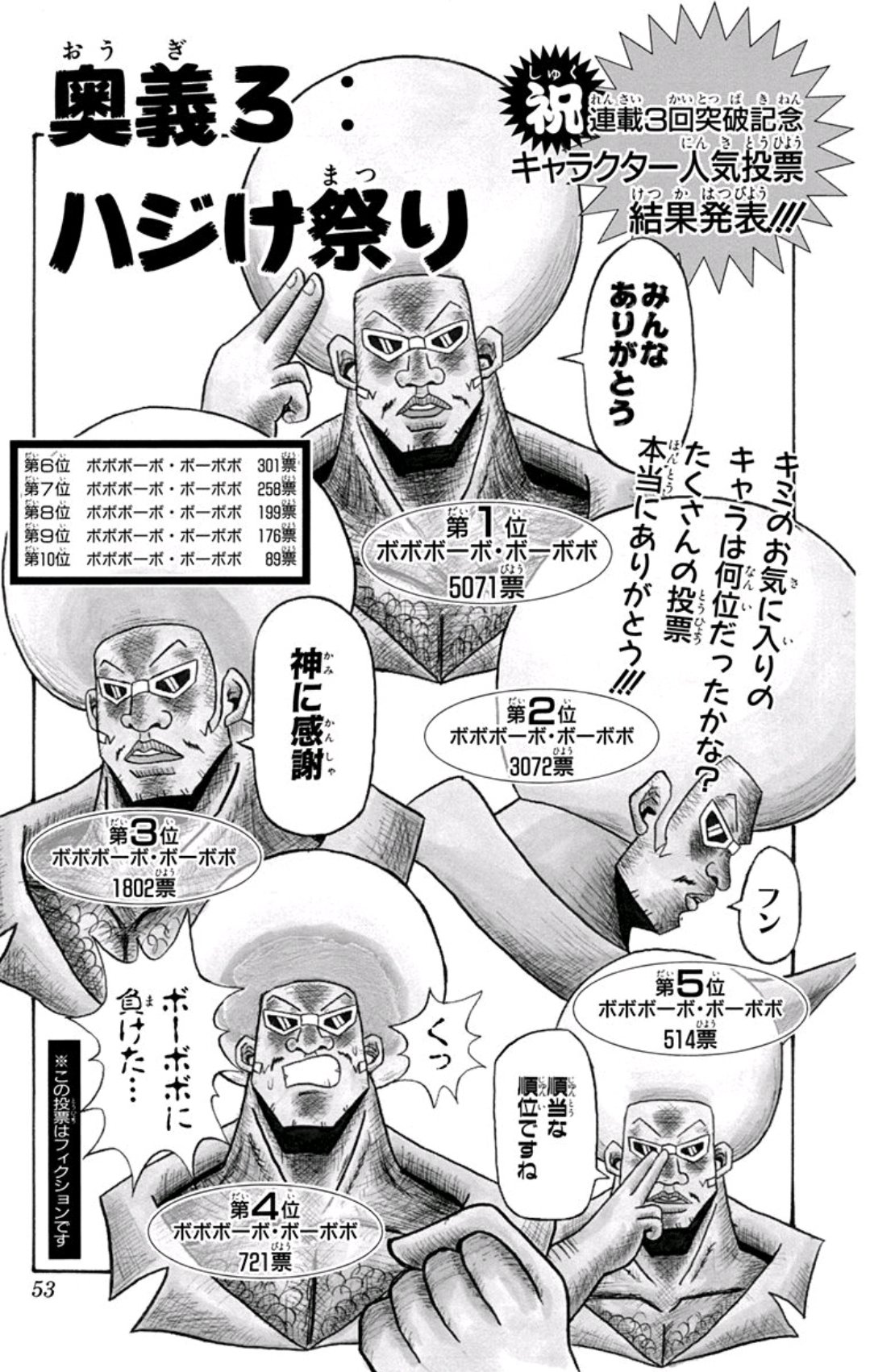 >>150863183the only times Bobobo ever gets #1 in the popularity polls are when he's the only option available the highest he's ever gotten in the normal popularity polls was 3rd place Don Patch has always been #1