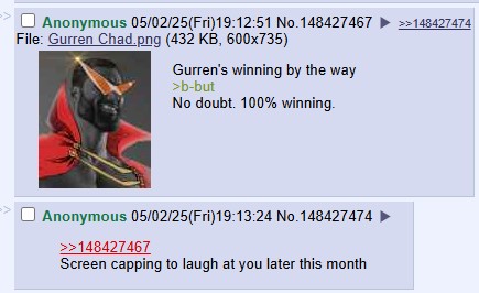 >man whose family is killed >becomes an big red flaming man when using his powers and even has a kaiju form, regularly performs huge destructive feats during his battles against bigger kaiju>has complicated relationship with his brother culminating in his brother sacrificing his life to help save the world>is being groomed by the creator god of the world to continue the cycle of suffering>defeats an evil overlord who believes the ends justifies the means and who wants to oppress all of humanity so that a bigger crisis can be averted>the final battle is comprised of a cosmic match in space before it ends with the man punching god in the face to shut him up>the ending has the main system the universe is built on fade into nothingness as the protagonist seems to pass away, but is implied to survive/revive far into the futureYup yup, Clive's deep and powerful connections to KINGTOS are winning this fight.