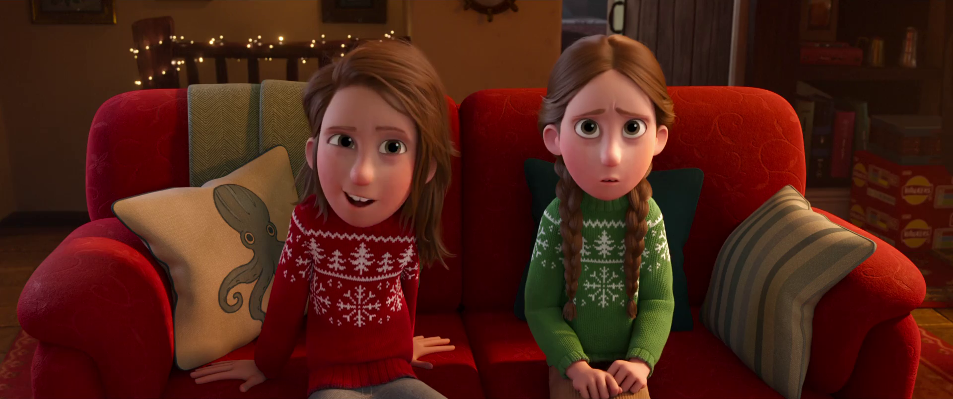 >The movie is a British computer-animated Christmas fantasy comedy distributed by Netflix. It is based on a trilogy of children's books by writer-director Richard Curtis. The film follows a series of interconnected stories about family, friends, and Santa Claus. The characters in the image are Sam and Charlie Beccles, a pair of twins from the film. I wonder how many things I have no concept of because they just came out on Netflix randomly