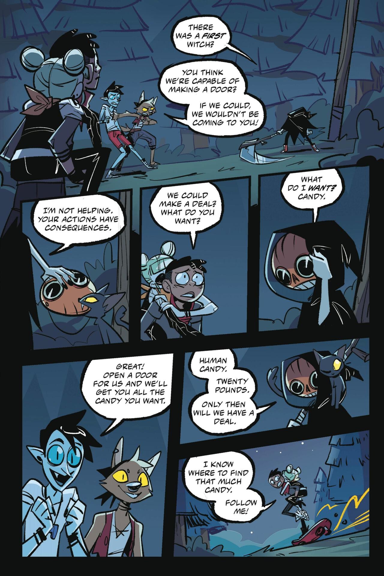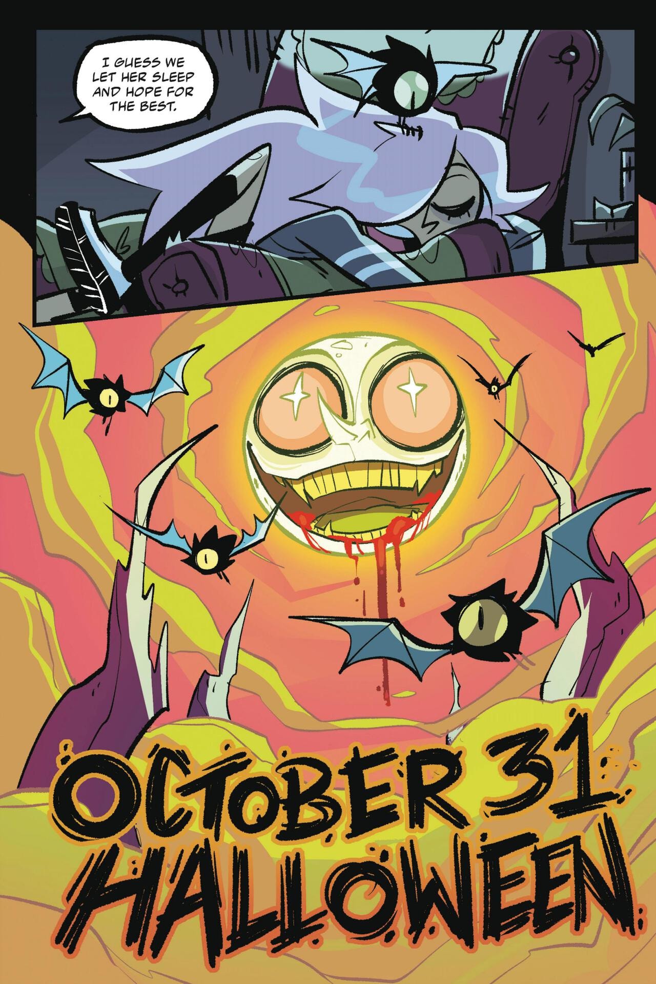 I liked Hellaween 1 more, but I still enjoyed 2. Better art and had more character development all around, even if the hunters turning friends was rather quick. Some of the dialogue is getting rough (the "my actions have consequences" line feels straight out of a tumblr fan comic) but otherwise pretty good.
