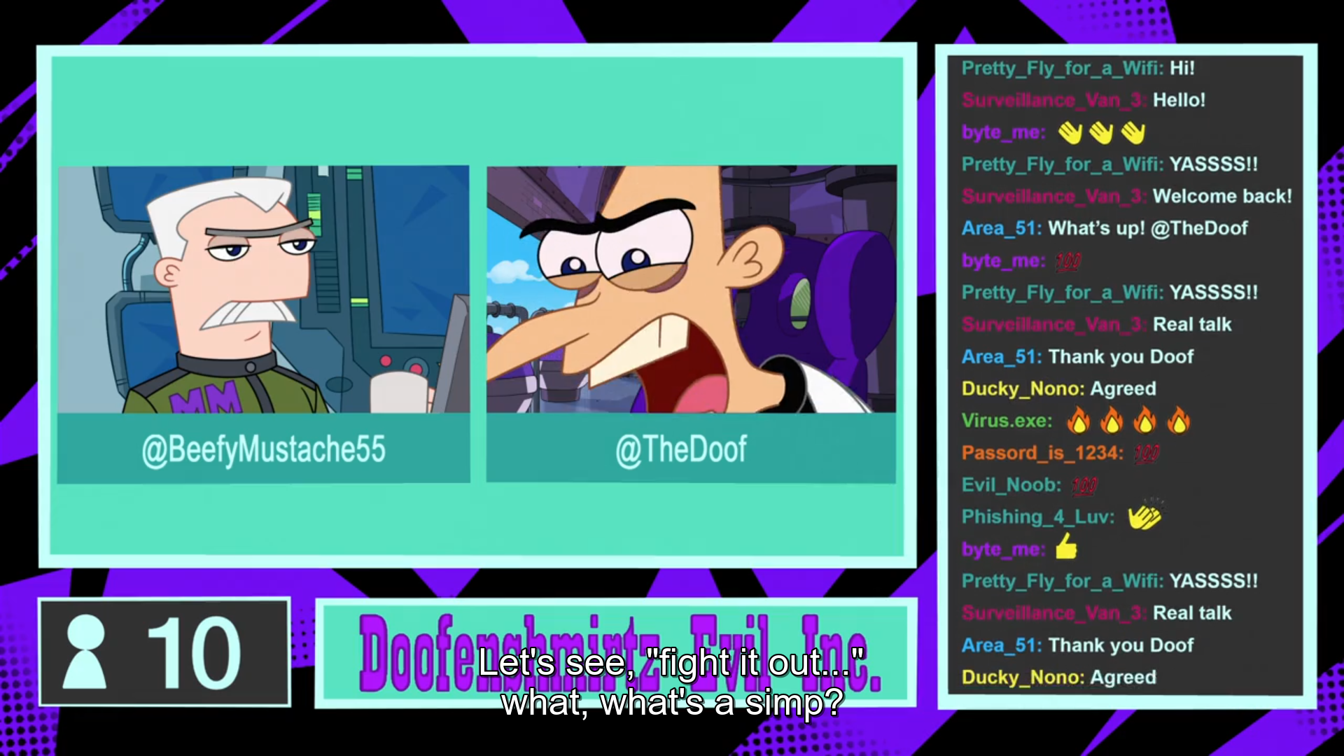 >>150909007It's some good attention to detail. The idea that Doofenshmirtz just live streams on his free time is great.