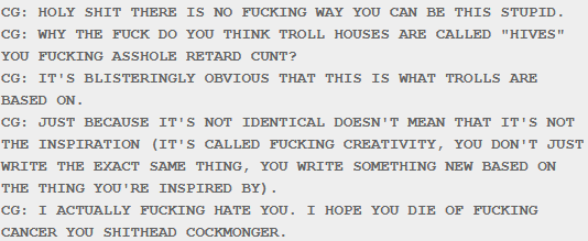 >>150901410Holy shit there is no fucking way you can be this stupid.WHY THE FUCK DO YOU THINK TROLL HOUSES ARE CALLED "HIVES" YOU FUCKING ASSHOLE RETARD CUNT?It's blisteringly obvious that this is what trolls are based on. Just because it's not identical doesn't mean that it's not the inspiration (it's called fucking creativity, you don't just write the exact same thing, you write something new based on the thing you're inspired by).I actually fucking hate you. I hope you die of fucking cancer you shithead cockmonger.