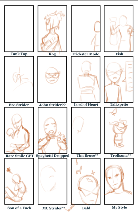 >>150895743counterpoint: homestuck, it's characters, and it's fandom all belong in the bin but I love us all anyway>>150895598I'll slowly work on it throughout the week. you guys wanna help me list some of the variations? I only have a few in mind so far