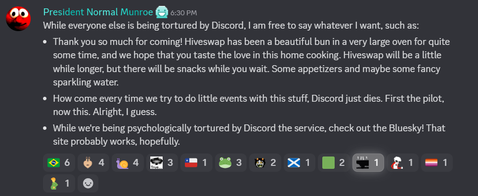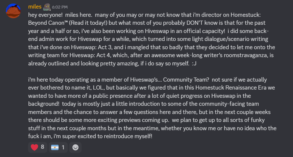 >>150915337First Beyond Canon, then Hiveswap, what next? Is the Discord Server going to swap leadership?