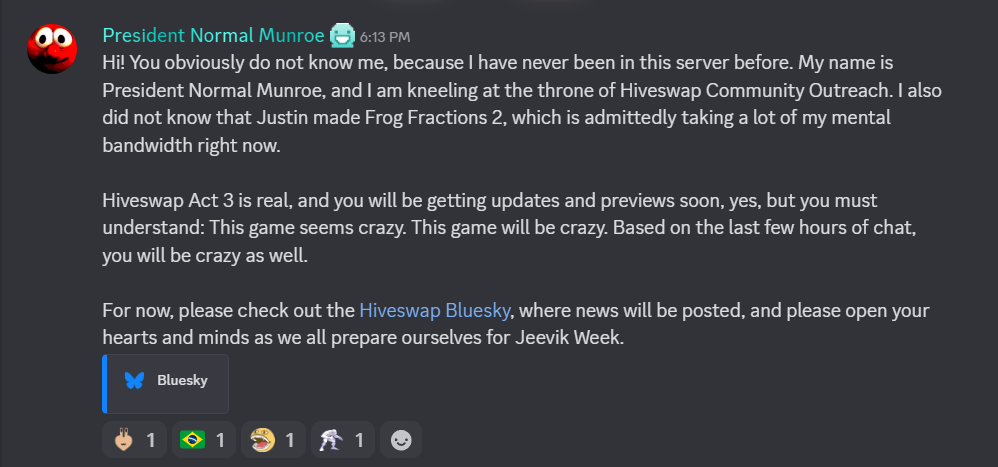 >>150914796More news will be announced on the Bluesky account!https://bsky.app/profile/hiveswap.bsky.social