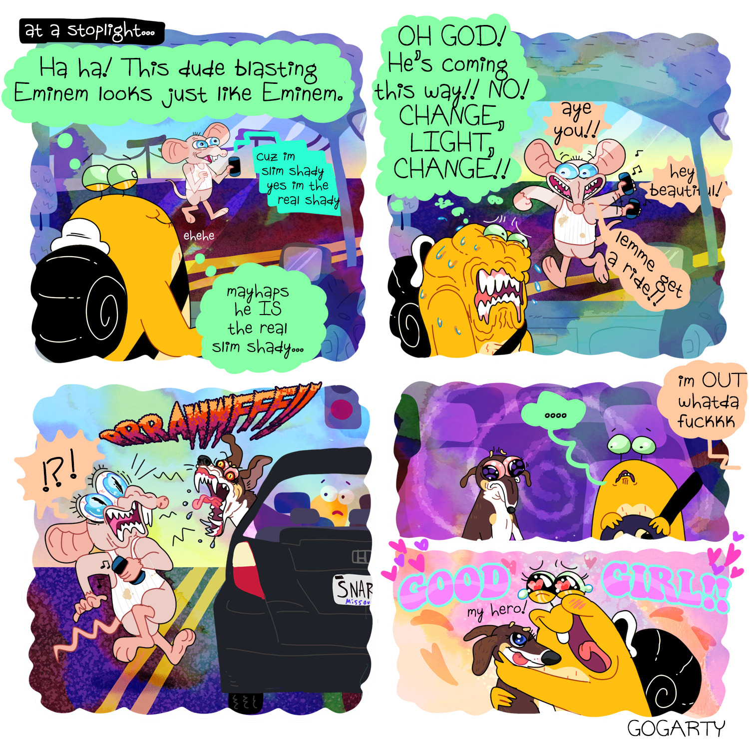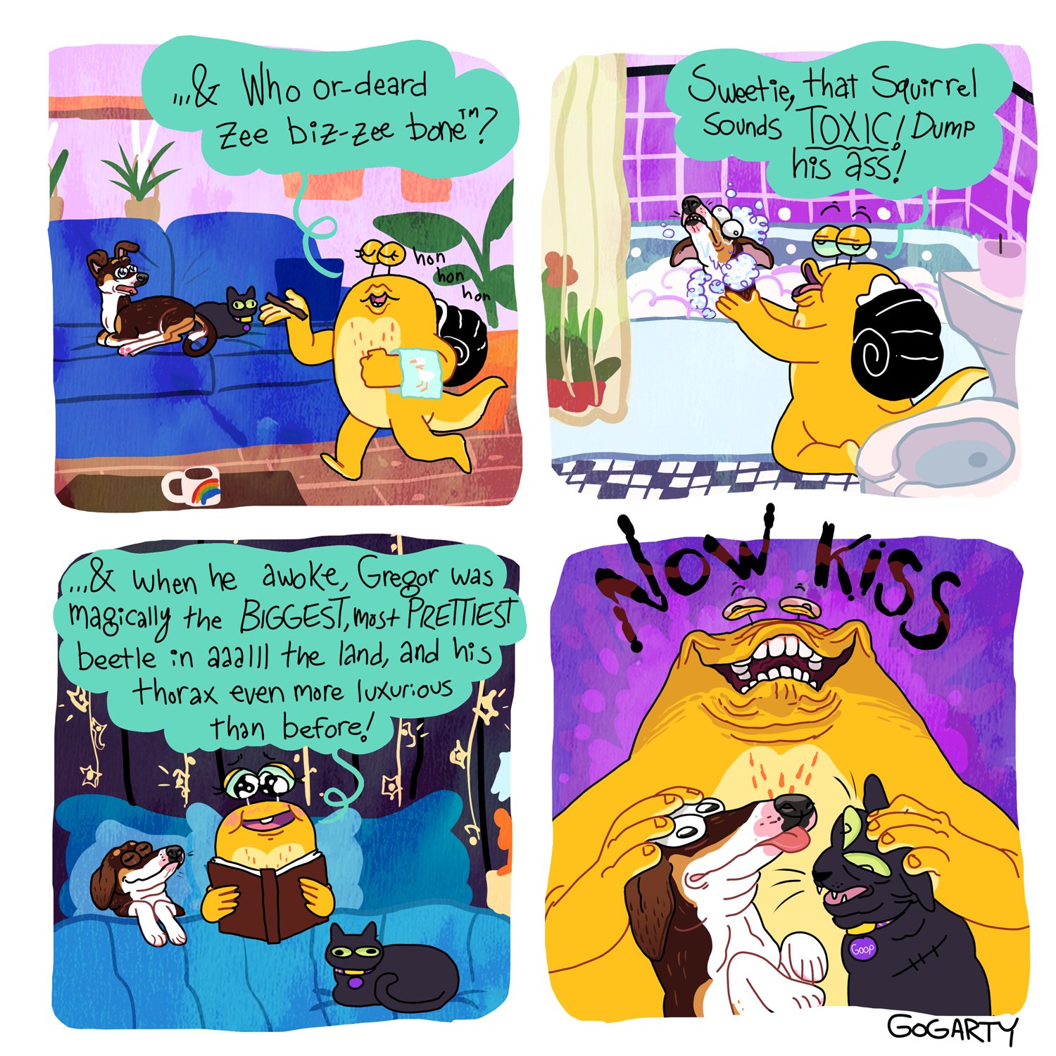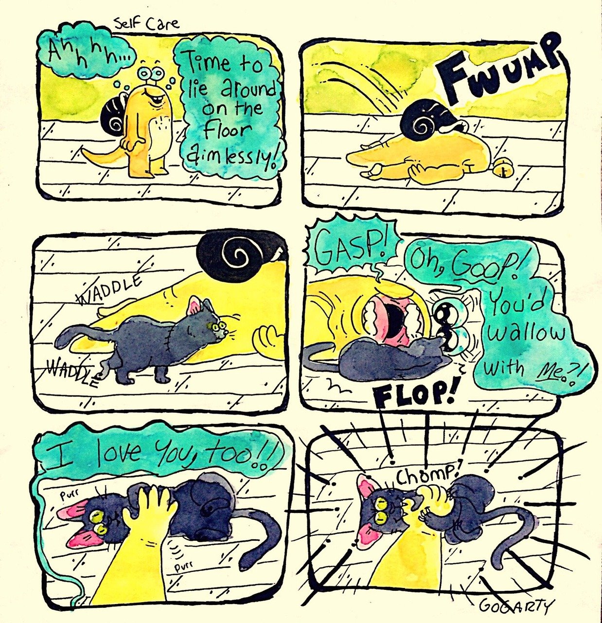 The only source of joy and validation this woman seems to experience is thru others or pets.Every comic about her own actions is self depreciation or outright expressing depression. No wonder she stuck with disgusting rat boyfriend for so long, she sees herself as his equal.