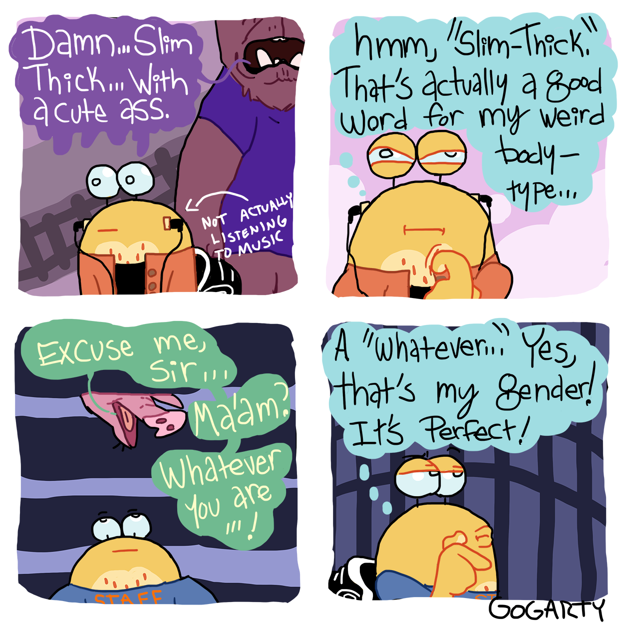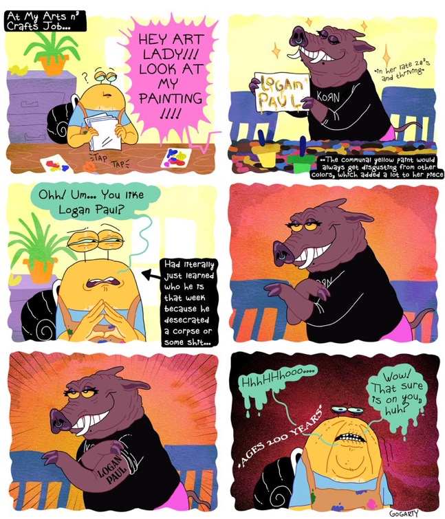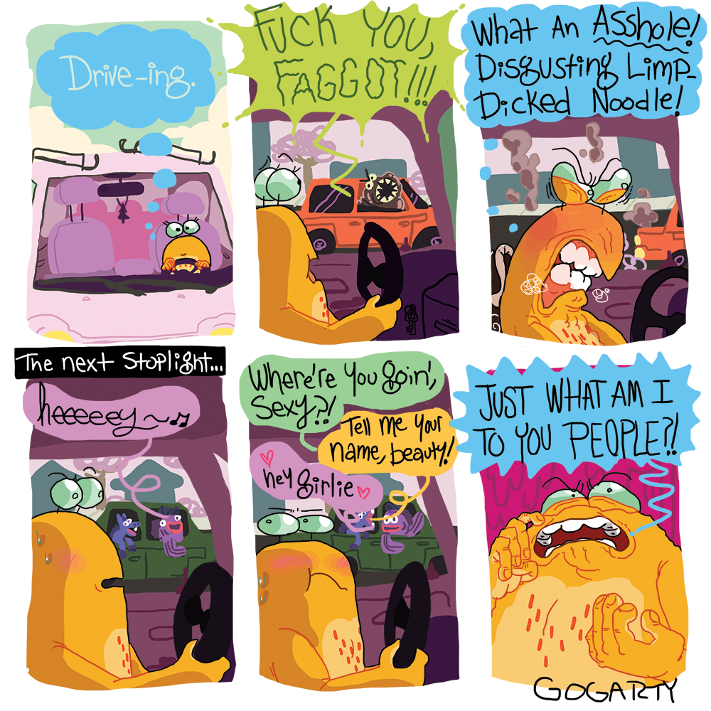 >>150908706>Every comic is either "Lol I'm an unkept, they/them gay goblin" or "Some ugly, nasty freak tried to hit on me for the 8th time this week"Truly the pinnacle of comedy.