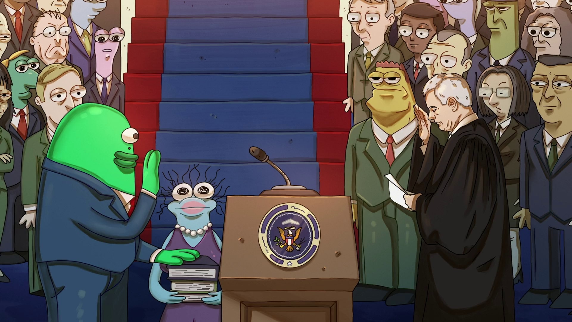 >>150919116I genuinely do not understand why people hate the Mr President episode. It's my favourite. Yet people seem to label it as their least favourite while at the same time there be so many memorable quotes to come out of that episode specifically. It's like they can't reconcile the fact the episode was good with the fact that the diaper shitting president was literally a caricature of nobody and simply played on the idea of "wouldn't it be funny if the president was a gross diaper wearing lamb eating idiot who had no idea how to do his job?"