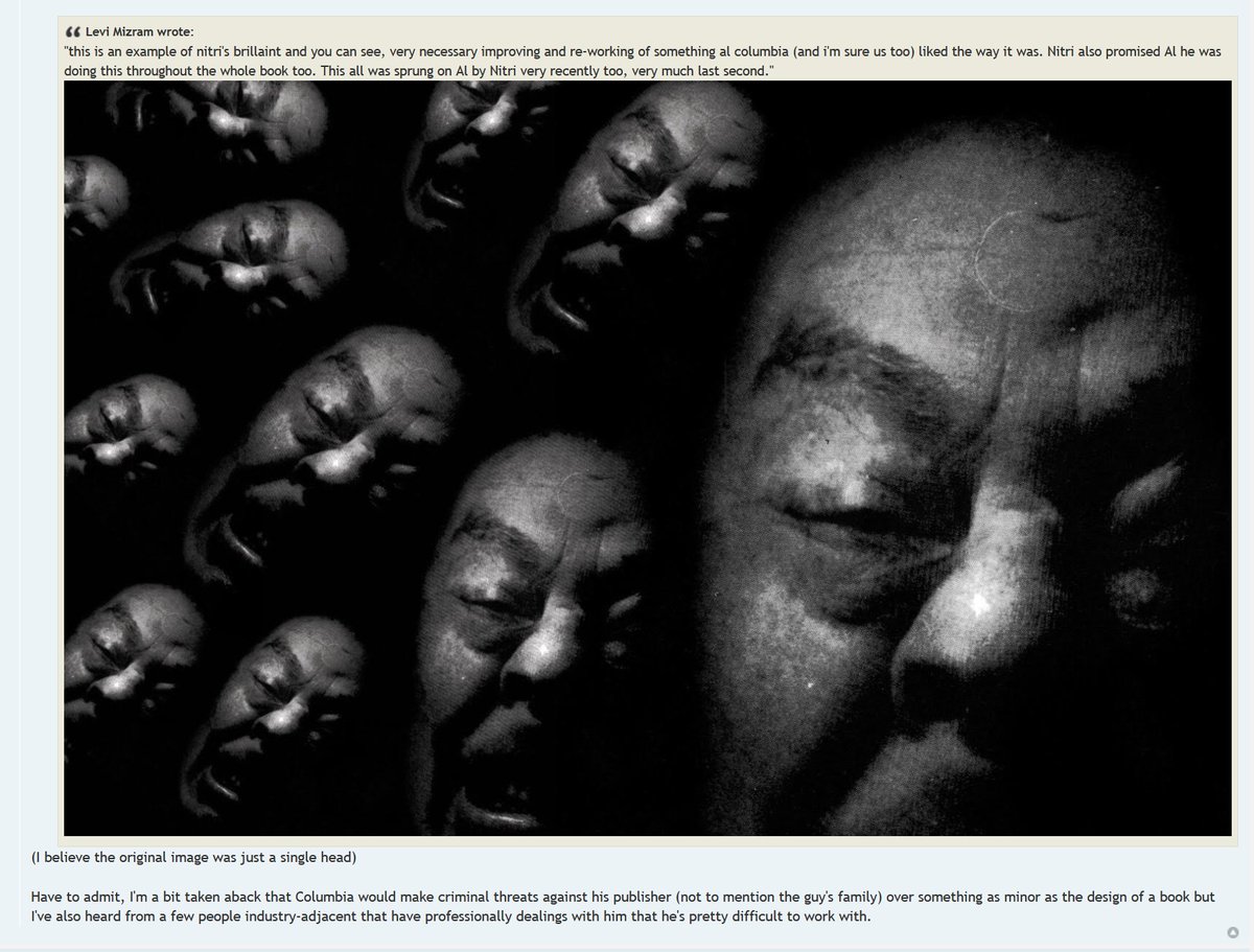 >>150924225This is the endpaper design that caused Columbia's shitfit. In the original Biologic Show issue 1, it was just the one face filling the page. Not sure if there were other planned alterations of the material or if this was the only one