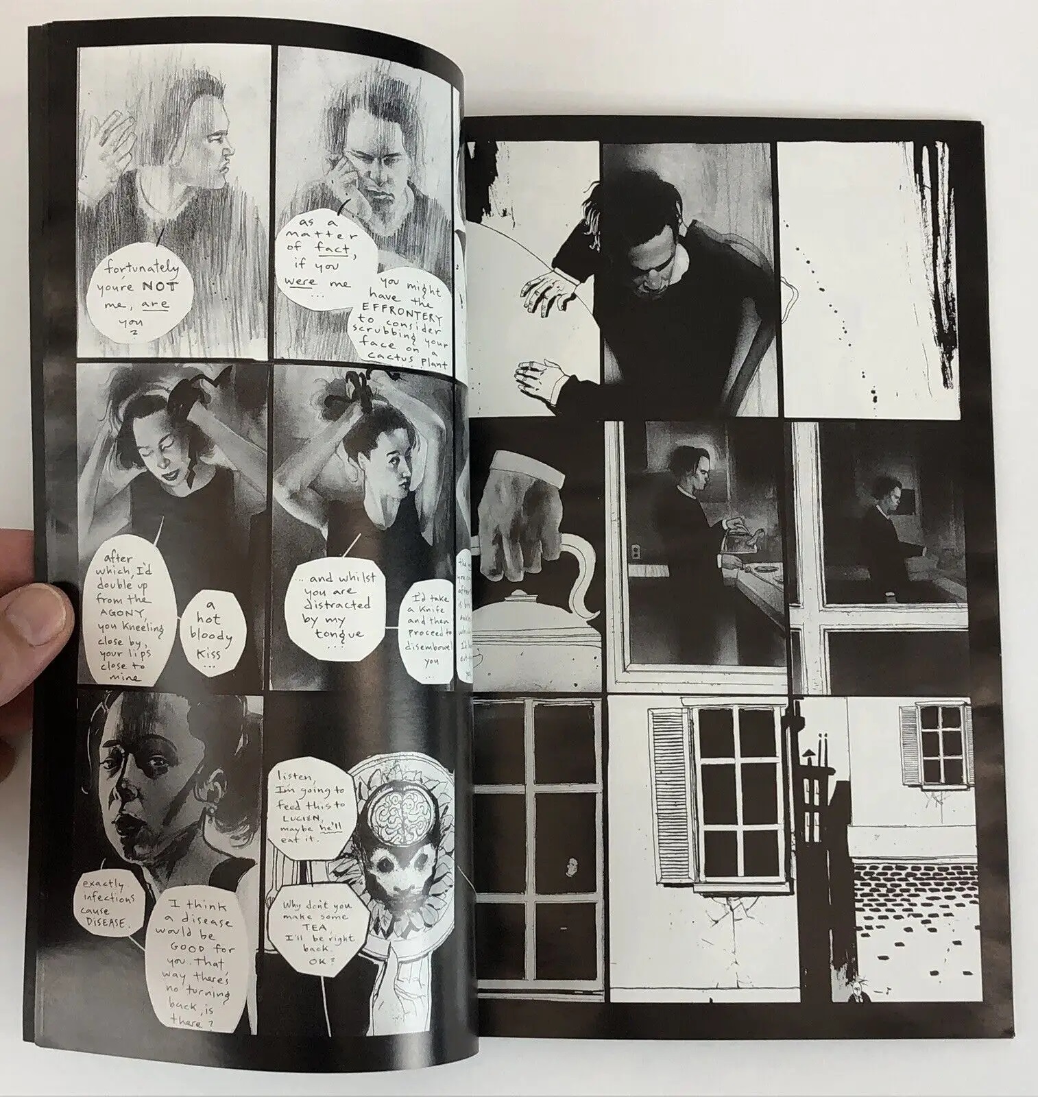>>150968990He's a very secretive person (the air of mystique surrounding himself is something he very purposefully cultivates and enjoys) and there's a lot of stuff that he divulged to me over a period of time that he made me sort of "swear secrecy" to, and I intend to respect that even still, however there are a few things in which I don't think he'd care if I shared them -1. Contrary to what his art may suggest, he isn't a satanist. He's a pretty devout christian.2. Like I said, a big reason for the way his comics are structured is because he likes things to feel dreamlike and obscure. However, there's also the fact that he finds it pretty hard to stay dedicated to a project for more than a few months. He hates working on long, structured storylines and tends to get bored of them too quick to see them through to completion, so it works well for him to just draw a bunch of small snippets and make compilations of them.2. The "Bloody Bloody Killer" character is based off goofy. Might seem pretty obvious in retrospect but he got a good laugh out of me when he told me that, just because its such a grotesque and horrible character.3. Big Numbers was dead in the water long before he destroyed the work for it. It was never going to get finished. Some guys in a band he knew thought it would be a cool idea for an album cover to make a collage from a bunch of chopped up pages from big numbers, and he just obliged their idea. As everyone in the studio knew at that point that they were working on a dead project, he thought it was no big deal at the time to "repurpose" some of the work. I guess it was just convenient to let the 19 year old assistant take the fall for what was really the fault of poorly managed finances and Alan Moore's titanic ego.