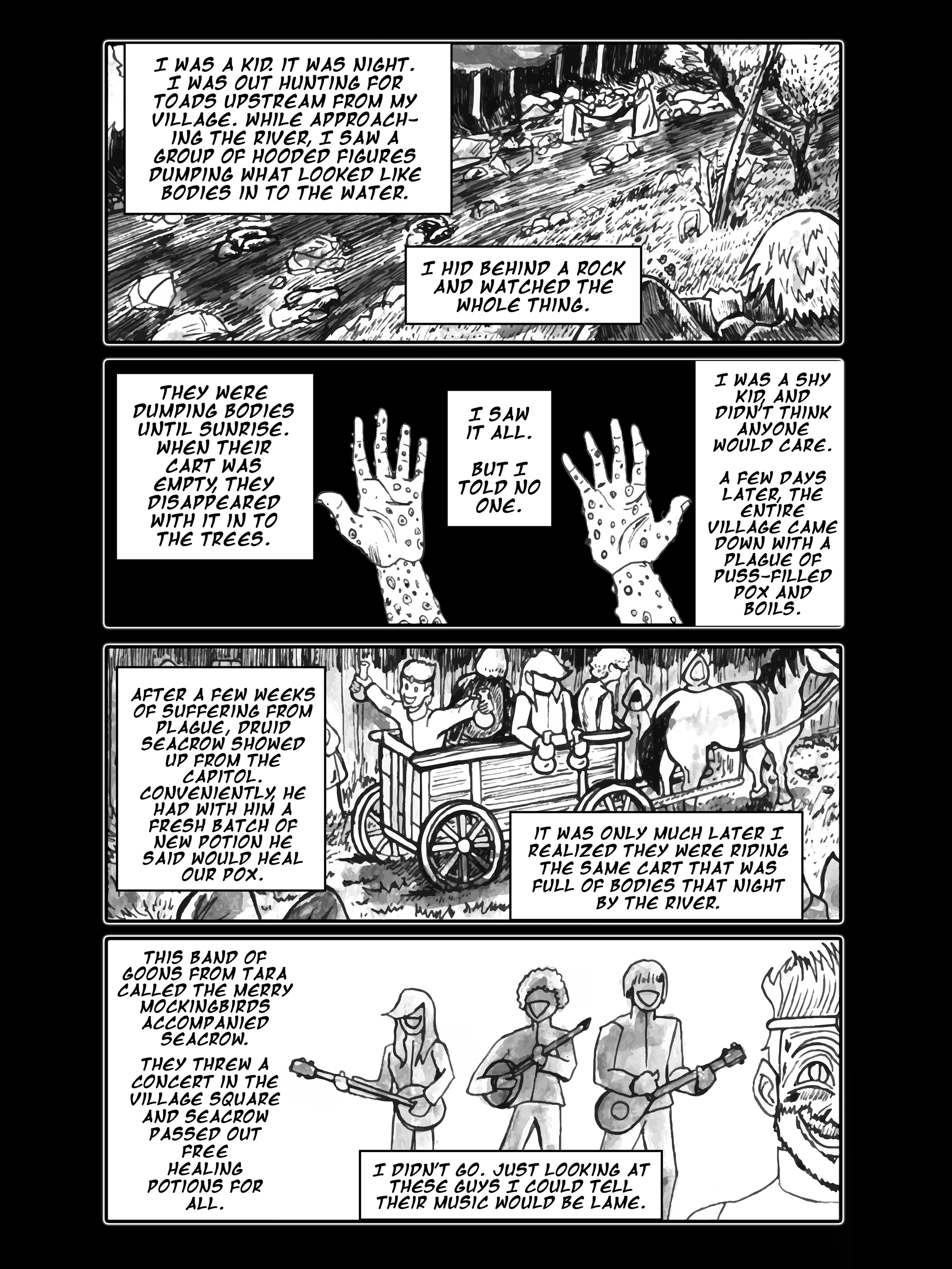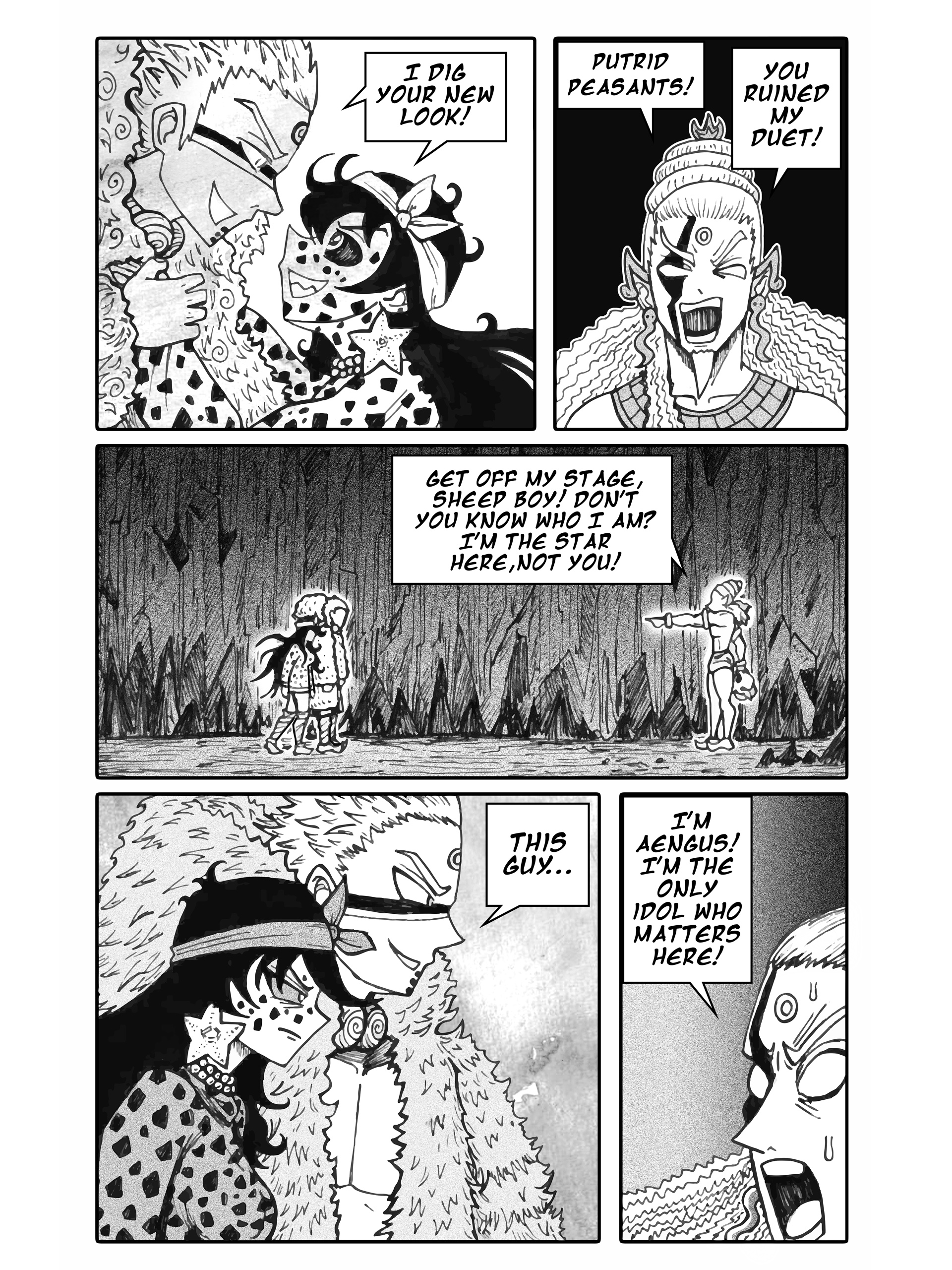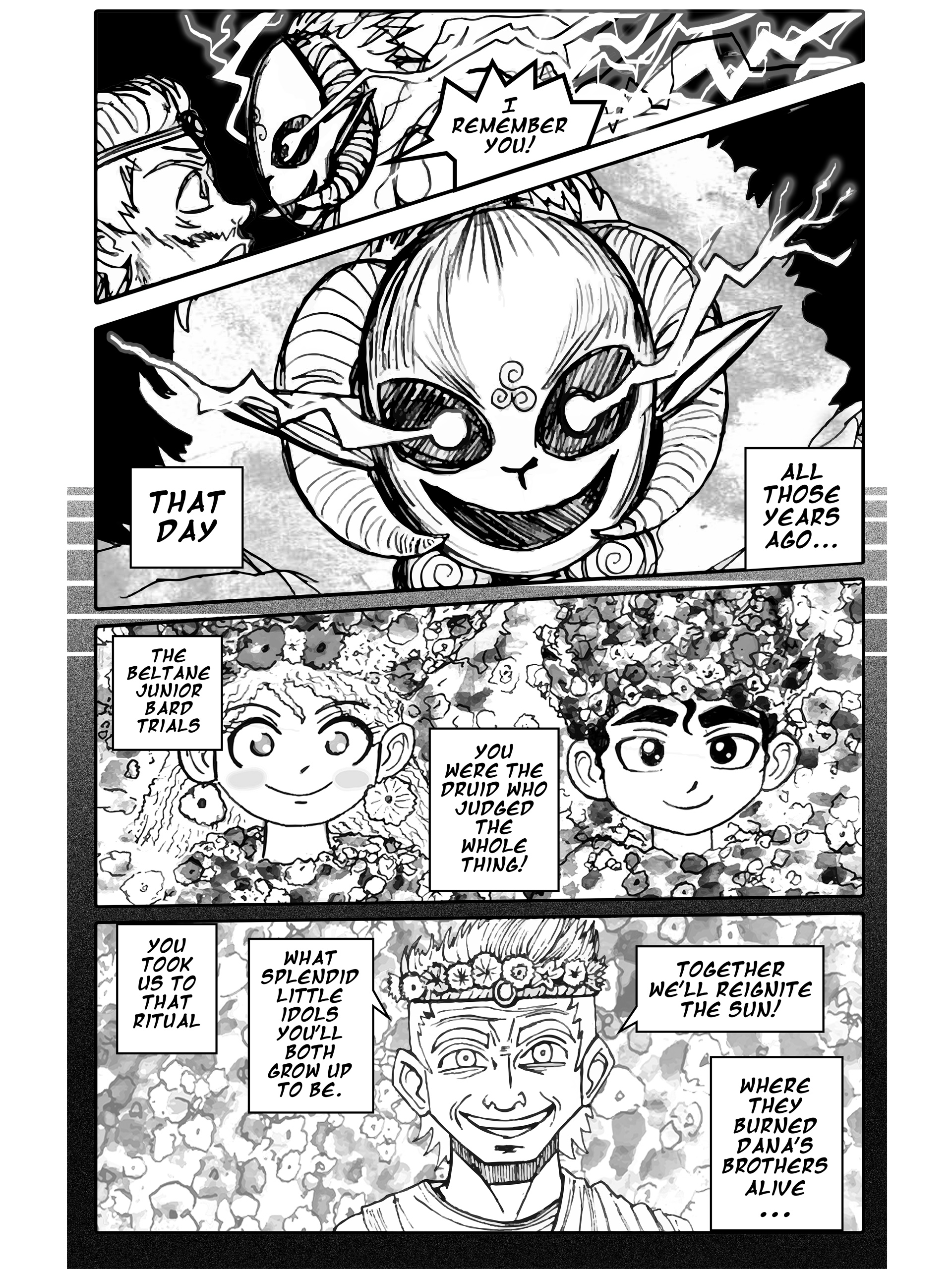 I'm going to continue storytiming my fantasy webcomic series Oi! Tales of Bardic Fury. It's set in 360 AD Ireland and follows the story of a bard-in-training who gets sent to a tiny village by the sea called Oi that never heard music before. This thread is chapters 26 and 27, from Oi volume 3- BURN YOUR IDOLS.Enjoy!Previous thread->>150818057