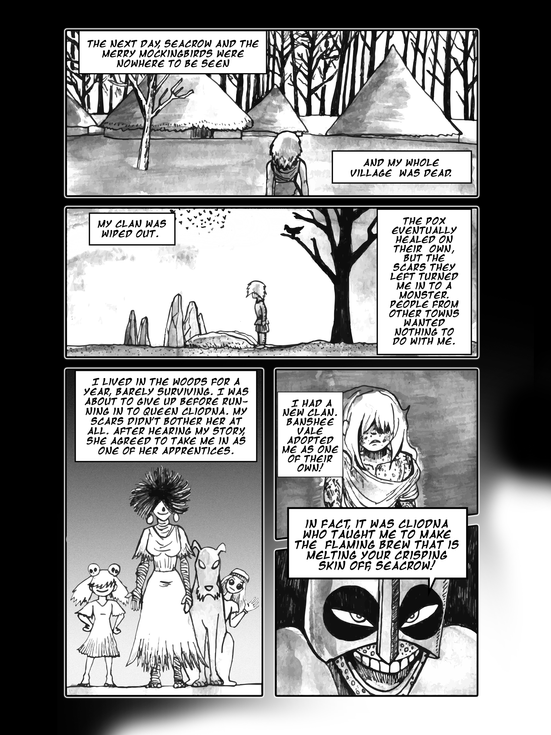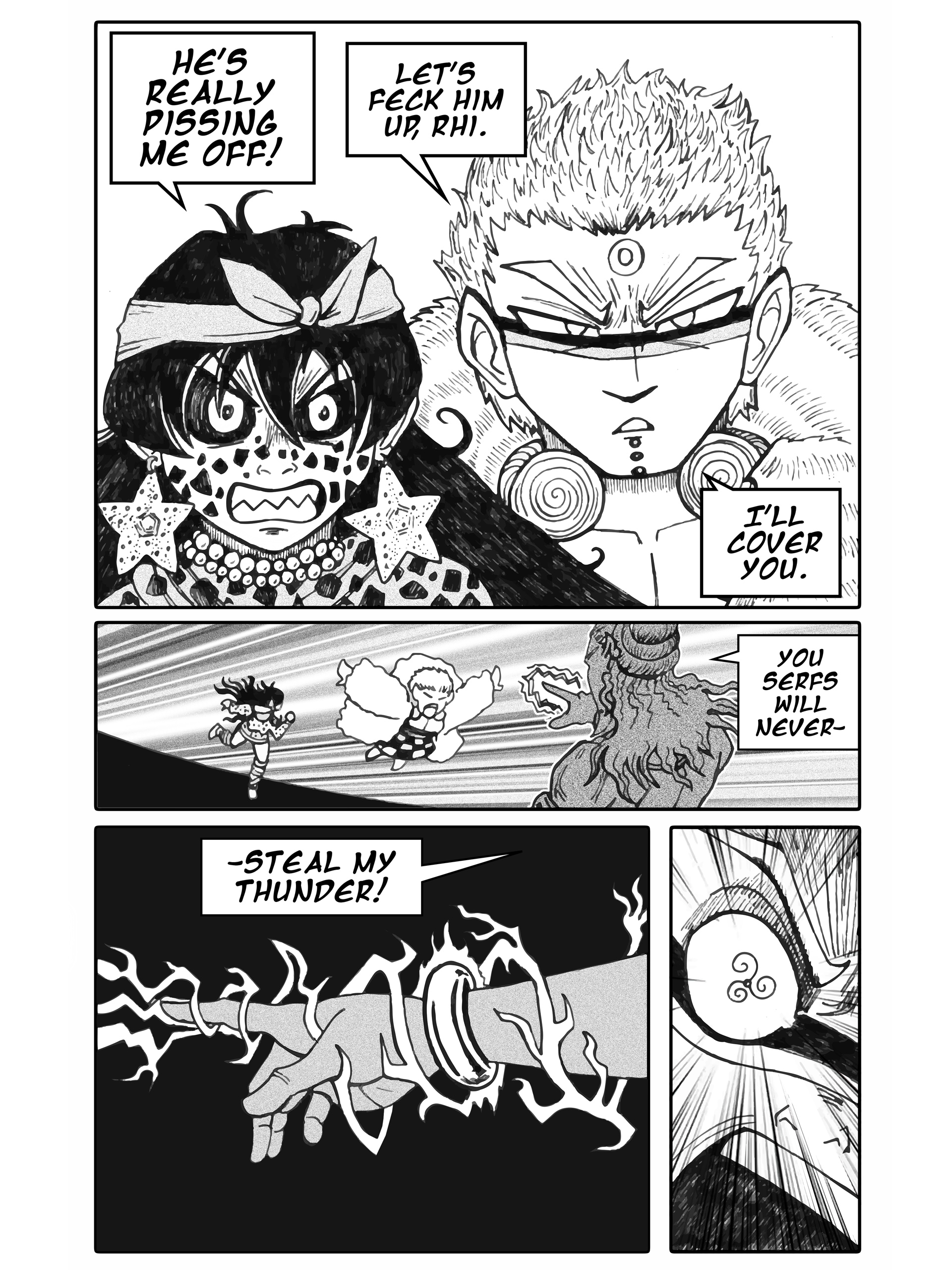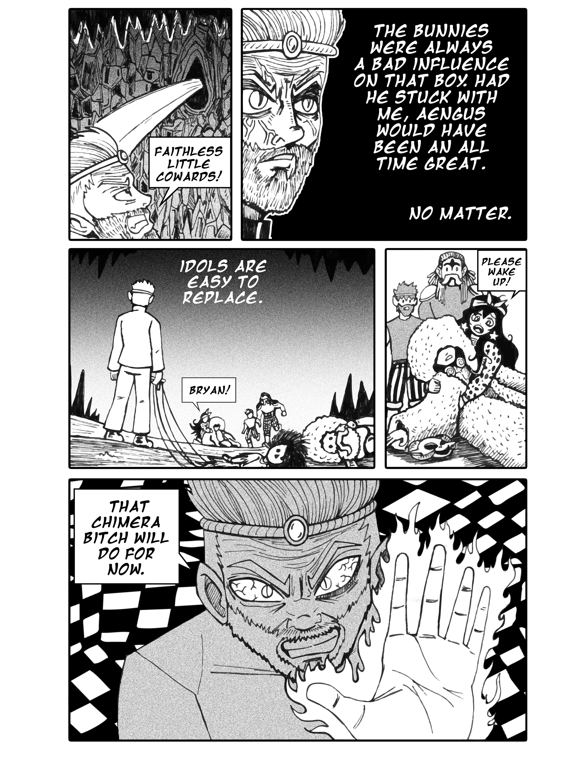 I'm going to continue storytiming my fantasy webcomic series Oi! Tales of Bardic Fury. It's set in 360 AD Ireland and follows the story of a bard-in-training who gets sent to a tiny village by the sea called Oi that never heard music before. This thread is chapters 26 and 27, from Oi volume 3- BURN YOUR IDOLS.Enjoy!Previous thread->>150818057
