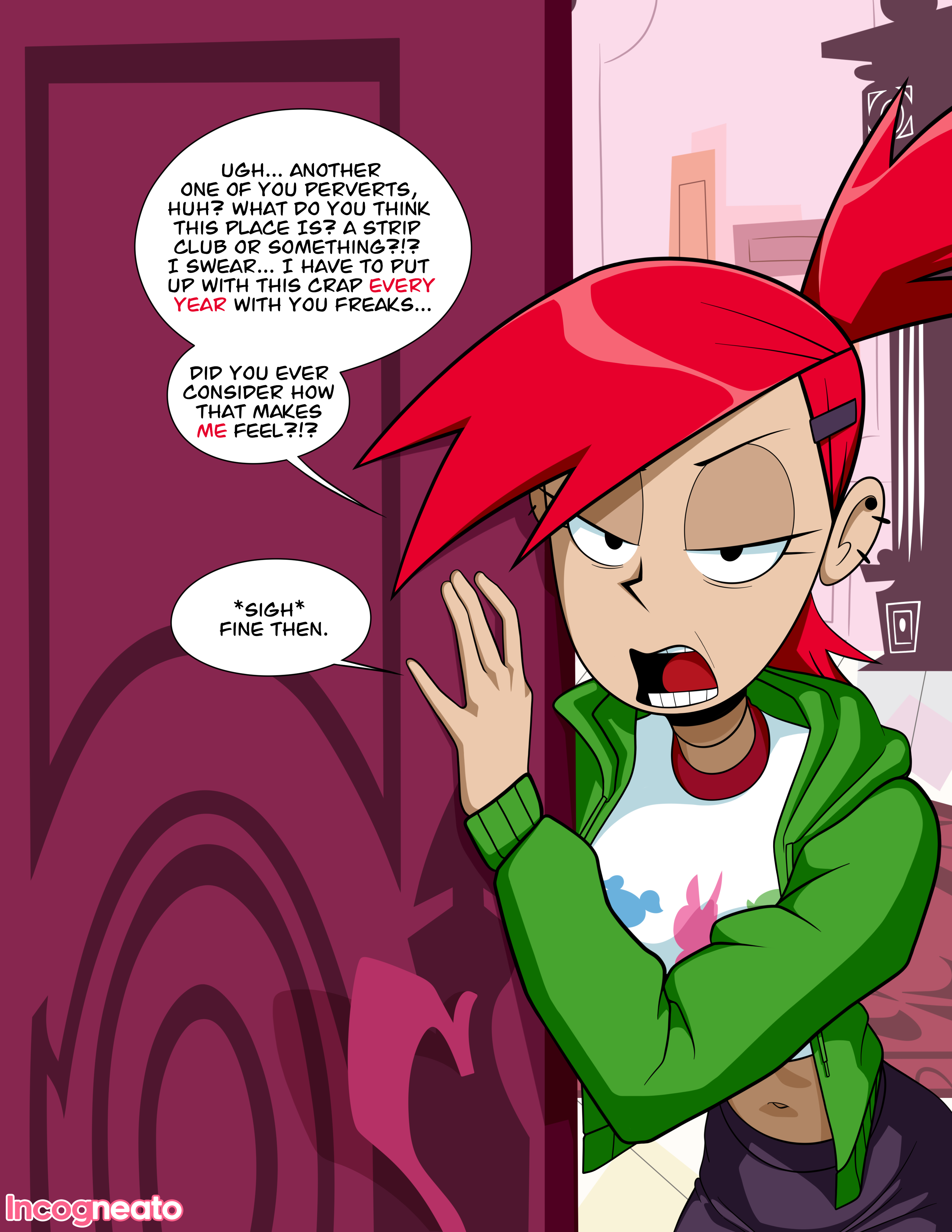 >>150941044I've always wanted to commission a comic of that exact scenario, where Imaginary Frankie just stumbles on a guy with a hardon in the bathroom or something and is immediately enamored as that buried sexual side of her finally clicks, but I've never found an artist that could both pull of the style right and also had comic commissions open.