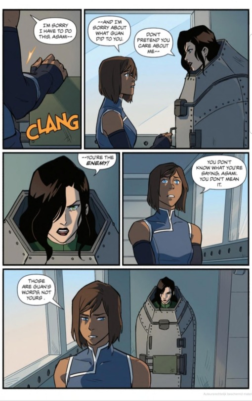 >>150940497that was the og plan, and she would be far more of an actual character if that was the casethis series needed a zuko or azula type foil and asami could have been that.>>150940512beat me to it