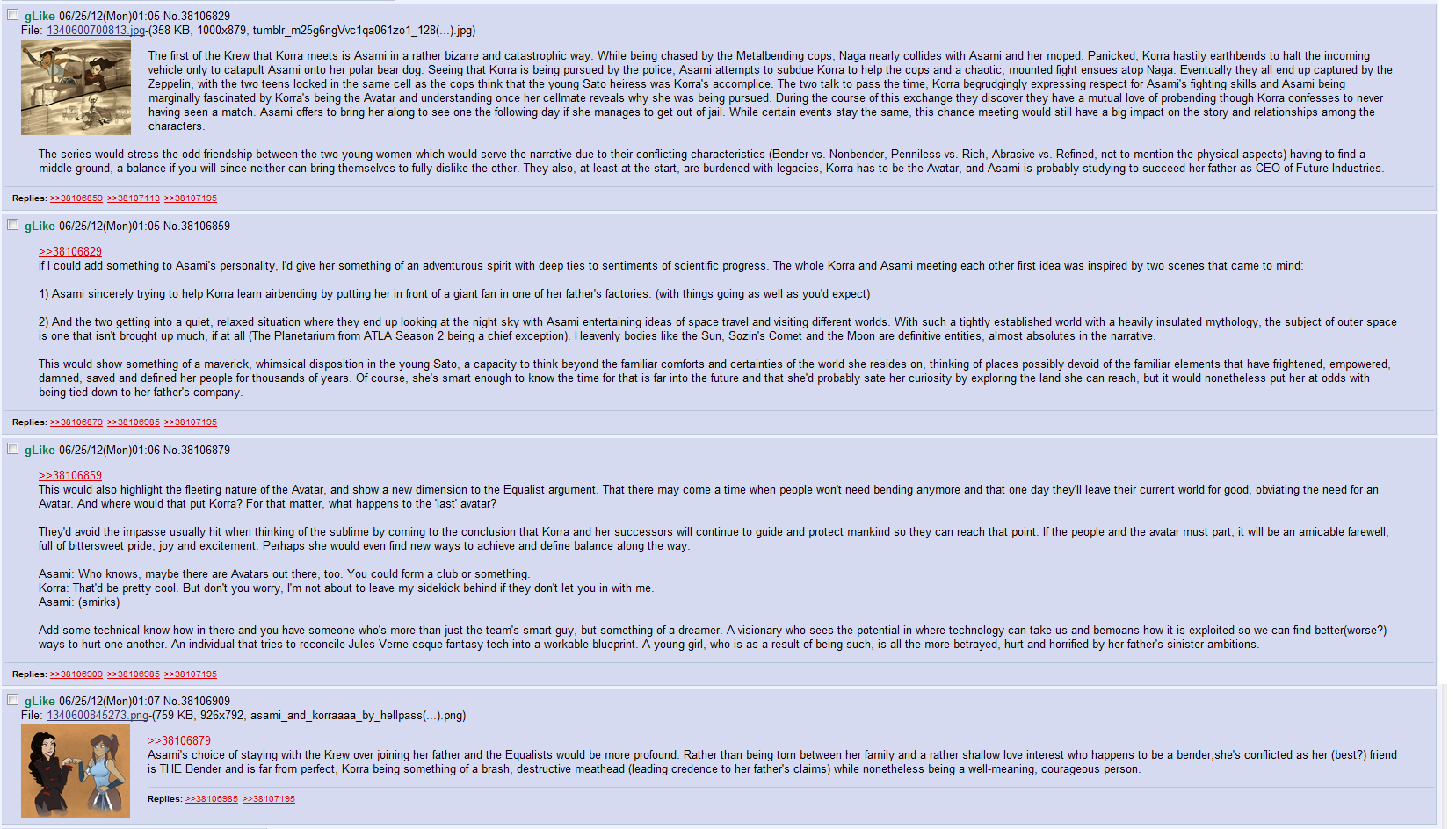 >>150942099>>150942175It literally is this simple.would also add>>150940444>Asami is evil. Like she needs to be EVIL and she needs to be evil ASAP.and >>150940561>this series needed a zuko or azula type foil and asami could have been that.Fuck it, i might just get around to doing a fic like this. avatar, like rwby is best enjoyed in the fannon compared to cannon. thats how bad the writing is.