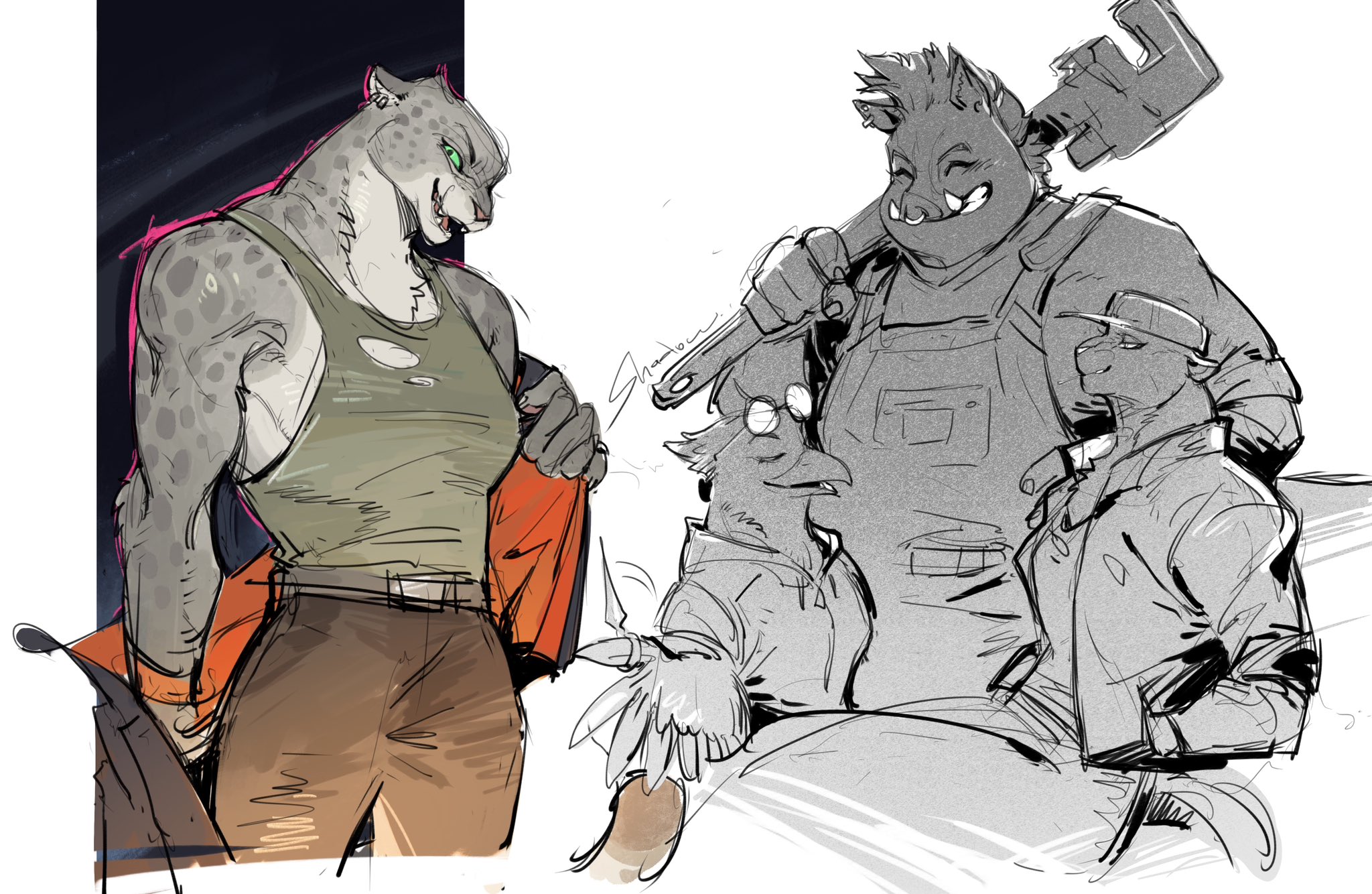 >>150959912This is what I meant when I compared it to Looney Tunes. There's all these humans as extras and side characters but all the important characters are animals and usually one of each. One cat, one fox, one snake, one shark. It definitely doesn't take its worldbuilding seriously but then again I don't think it's trying to or that it needs to since its going for silly and cartoony.